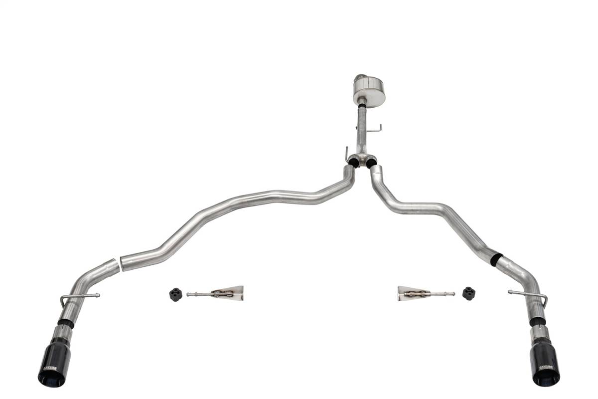 CORSA Performance's 2021+ F150 Exhaust Offering Has Arrived! Featuring a wide range of exhaust systems and exit options (Front of Tire, Side Exit and Dual Rear), CORSA's catback exhaust assortment has an exhaust system for every F150 owner. Made from 3.0" 304 stainless steel construction and featuring CORSA's Best-in-Class No Drone RSC(R)Technology, we've customized two unique exhaust sound levels for the F150 customer. CORSA's "Sport" sound level offers an aggressive cold start, moderately aggressive exhaust note under acceleration while maintaining stock levels of in-cabin volume. CORSA's "Xtreme(TM)" system is the loudest exhaust note we offer, noticeably more aggressive than the Sport system on both cold start and during acceleration while only inducing slightly more in-cabin volume. All exhaust systems come with dual wall stainless steel exhaust tips and come available in both polished and Black PVD coating. CORSA Performance exhaust systems are made possible through a 20+ year commitment chasing the "Science of Sound"© and are proudly made in the USA and backed by a Limited Lifetime Warranty.