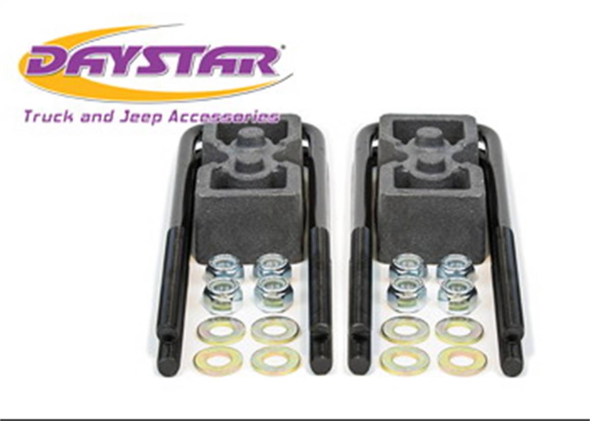 ComfortRide(TM) Rear Leveling Kit with Lift Height by Daystar(R). Easy Install, with Hardware. Leveling kits are designed bring the vehicles front stance up while leaving the rear as it is. Polyurethane construction ensures proper cushioning to prevent harsh vibrations being transferred to the passenger area. Kit includes all applicable spacers, torsion bar keys, and other related hardware specific to your vehicle design. Replacement of existing factory springs, shock absorbers, or struts is not needed. Limited lifetime warranty.