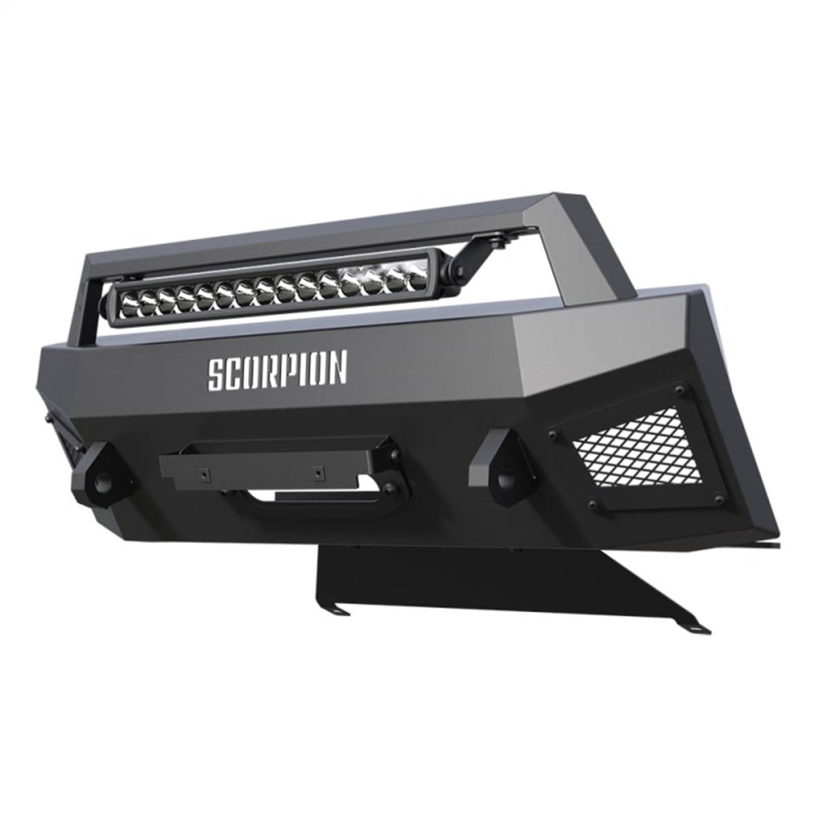 Looking for a stylish front bumper without the bulkiness of a complete front bumper replacement, then the Scorpion Extreme Tactical Series was designed for you. Each Tactical Center Mount Bumper is manufactured from high quality cold roll steel, cut using high precision lasers and precisely formed into a clean, low profile hidden winch mount design. The new Scorpion Tactical bumpers are built for durability, strength and finished with a high quality black powder coat. Each winch mount features a standard 4.5" X 10" integrated winch mount tray and can fit most standard size winches up to 12,000lbs. Each winch mount also includes a 20" Scorpion low profile LED Light bar.