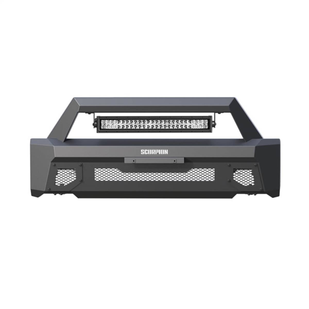 Looking for a stylish front bumper without the bulkiness of a complete front bumper replacement, then the Scorpion Extreme Tactical Series was designed for you. Each Tactical Center Mount Bumper is manufactured from high quality cold roll steel, cut using high precision lasers and precisely formed into a clean, low profile hidden winch mount design. The new Scorpion Tactical bumpers are built for durability, strength and finished with a high quality black powder coat. Each winch mount features a standard 4.5" X 10" integrated winch mount tray and can fit most standard size winches up to 12,000lbs. Each winch mount also includes a 20" Scorpion low profile LED Light bar.