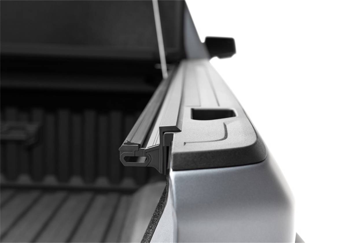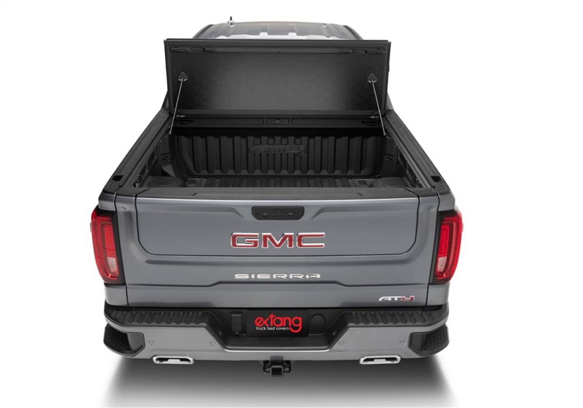 Introducing Extang's Xceed -- a seamless and secure hard folding truck bed cover designed and engineered to greater expectations. This flush mounted, hard-folding cover offers full bed access when open, and adds a seamless and polished look to your truck when closed. Xceed was precisely Extang Engineered to provide excellent coverage while ensuring maximum security and ultimate style. Go completely sleek without minimizing the durability of your truck bed cover. Flush mounted to provide an extreme low profile appearance and engineered to complement your truck's functionality and looks. Xceed's matte black finishes are the final touches to enhance the overall appearance of your truck. Xceed also goes double duty on superior security. The EnduraCoat moisture-proof vinyl covering is dedicated to protecting your cargo from earth's elements and the Secure Rotary Release knob hides the operation cable to add an extra step of protection. Together, you can rest assured that your cargo is entirely secured. Stowing large cargo just got easier. Xceed folds all the way up to the back window, allowing complete, full bed access with a unique four-panel construction to reduce the overall height when open.