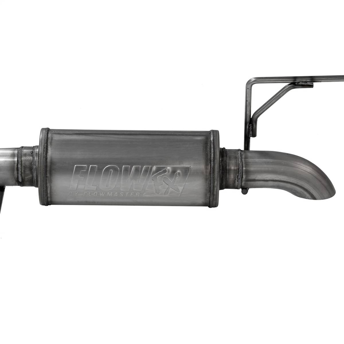 Flowmaster introduces our new FlowFX Extreme and Outlaw Extreme stainless steel cat-back exhaust systems for popular truck and SUV applications. These systems use a FlowFX or Outlaw style muffler for a deep powerful sound and increased performance. 3.0-inch Mandrel bent 409 stainless steel tubing is used for maximum exhaust flow and durability. The systems have a turndown style dump exit right after the muffler to eliminate the over-axle tailpipe. This elimination of the tailpipe helps to improve ground clearance and departure angle when you are driving in more extreme off-road situations. All of the necessary hardware is included and factory mounting locations are used for an easy installation. Backed by Flowmaster's Lifetime Limited Warranty.