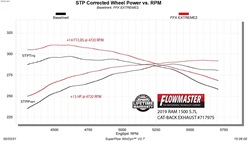 Flowmaster introduces our new FlowFX Extreme stainless steel cat-back exhaust system for the 2019-2021 RAM 1500 with the 5.7L engine. This system uses a FlowFX series muffler for a deep powerful sound and increased performance. 3.0-inch mandrel bent 409 stainless steel tubing is used for maximum exhaust flow and durability. The system has a turndown style dump exit right after the muffler to eliminate the over-axle tailpipe. This elimination of the tailpipe helps to improve ground clearance and departure angle when you are driving in more extreme off-road situations. All of the necessary hardware is included and factory mounting locations are used for an easy installation. Backed by Flowmaster's Lifetime Limited Warranty.