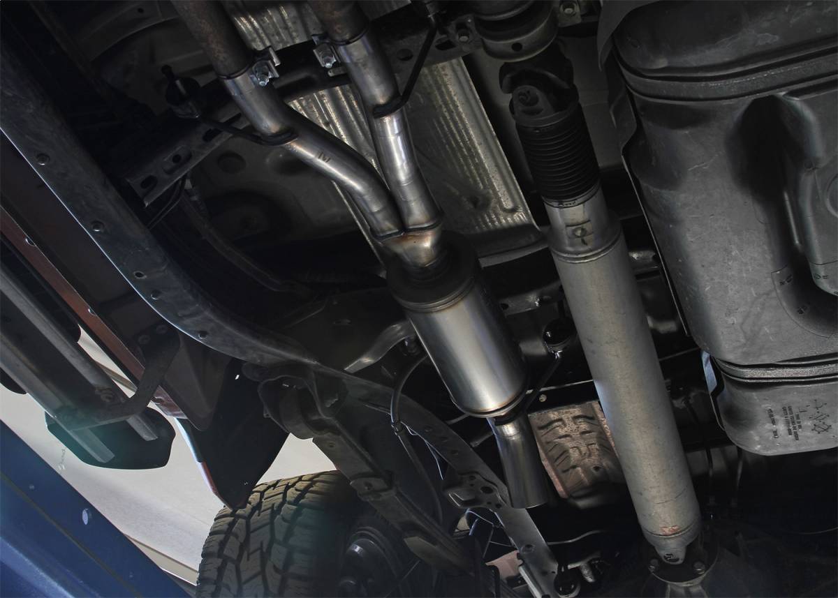 Flowmaster introduces our FlowFX Extreme stainless steel cat-back exhaust system for the 2007-2021 Toyota Tundra with the 4.7 or 5.7-liter engine. This system uses a FlowFX series muffler for an aggressive to moderate sound level and increased performance. 3.00-inch mandrel bent 409 stainless steel tubing allows for maximum exhaust flow and durability. The system has a turndown style, dump exit right after the muffler to eliminate the over-axle tailpipe. This elimination of the tailpipe helps improve ground clearance and departure angle when you are driving in more extreme off-road situations. This system produced max dyno gains of 5 hp and 6 lb-ft of torque at the rear wheels. All of the necessary hardware is included, and factory-mounting locations are used for an easy installation. Backed by Flowmaster's Lifetime Limited Warranty.