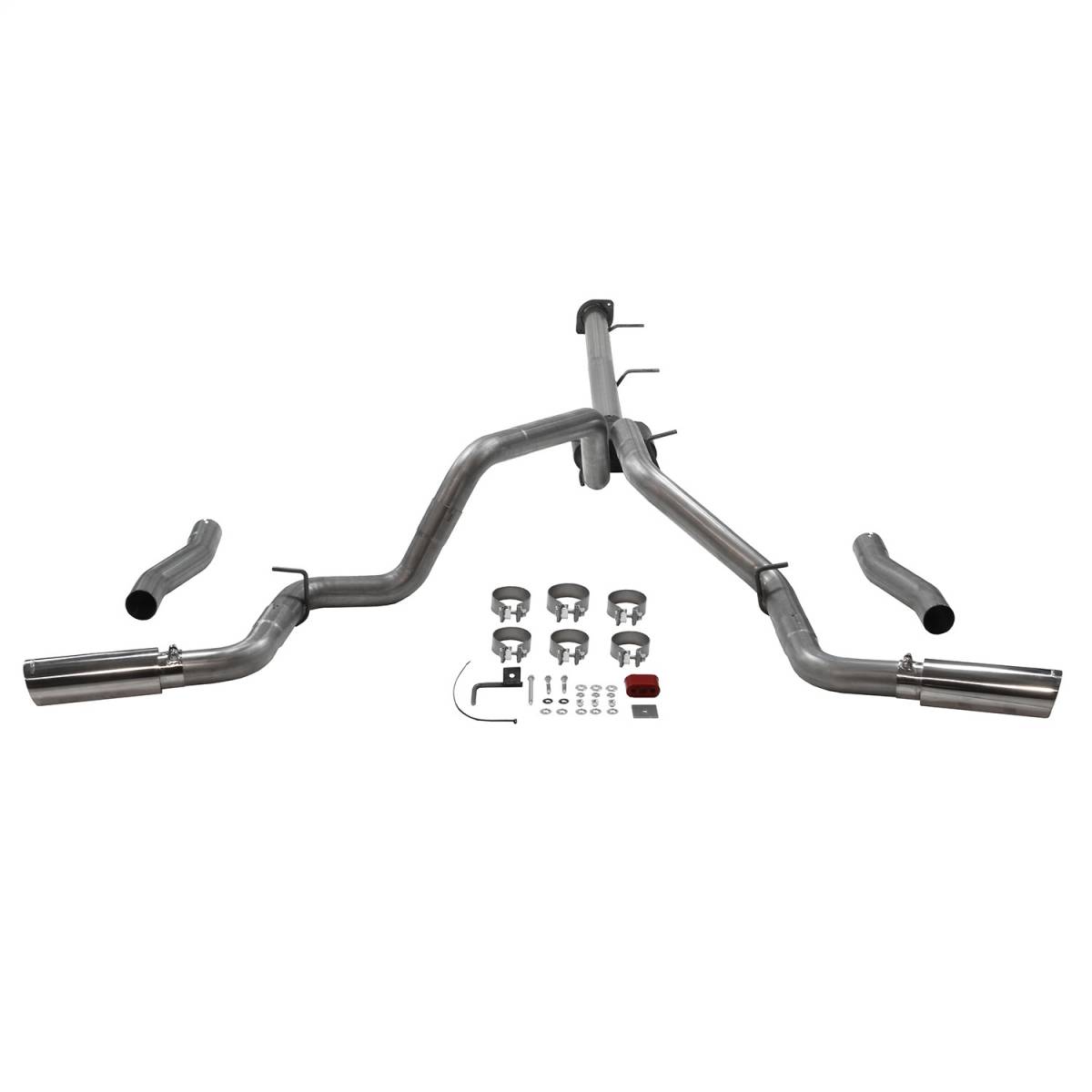 This Flowmaster(R) Outlaw(R) Cat-back exhaust system for the 2020-2021 Chevy Silverado and GMC Sierra 2500HD/3500HD trucks with the 6.6L gas engine, is perfect if you are looking for an aggressive sound level inside and outside of the truck, with all of the performance benefits that you would expect from Flowmaster(R). Maximum increases of up to 9 hp and 9 lb.ft. over the stock exhaust at the rear wheels. Designed for the Crew Cab, Standard Bed (6.5 ft.) models only, this bolt-on, emissions-legal system features a stainless steel Outlaw series muffler and large dual 3.00-inch 409 stainless steel mandrel-bent tailpipes that can be configured to exit either dual straight out the back, or dual out the sides behind the rear wheels which is best suited for towing applications. The system is finished off with polished 4.00-inch stainless steel tips and is covered by our Lifetime Limited Warranty. Designed for an easy fit, this system includes all necessary parts and hardware for installation.
