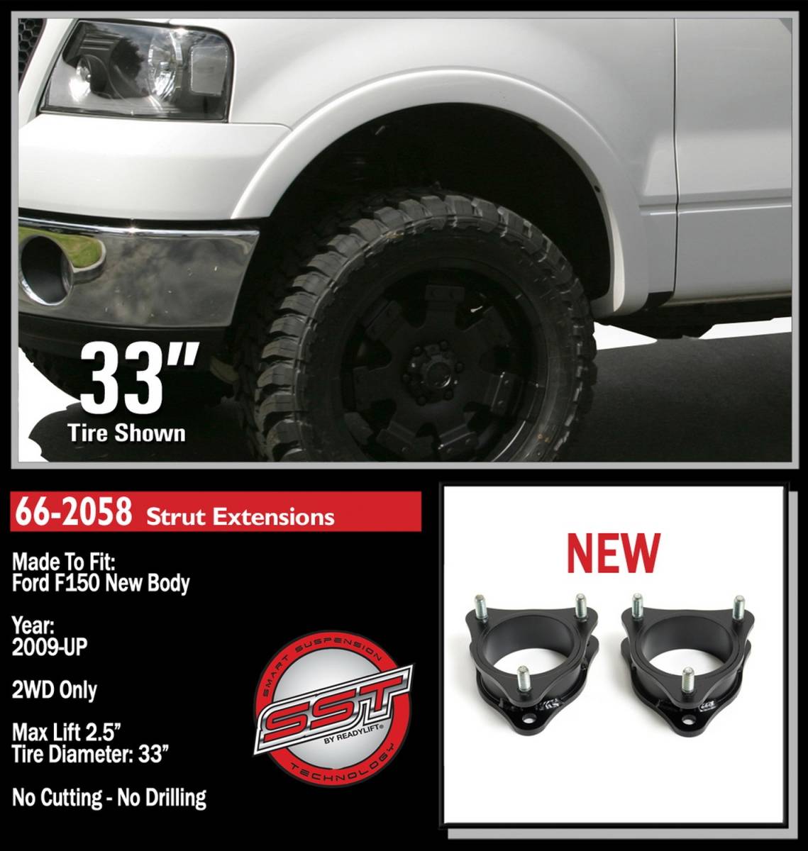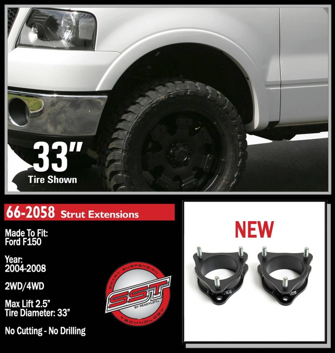 ReadyLift leveling kits are the fastest, safest, least expensive way to bring the front of your vehicle level with the rear. Our innovative Smart Strut Technology mounts on top of the strut assembly, eliminating the hassle, time and danger of compressing springs. ReadyLift steel strut extension will maintain a smooth OEM ride without adding pressure to stock suspension components, guaranteed! Installation is simple and requires no strut preloading, cutting, or modification of factory installed parts. While other kits cost thousands to buy and hours to install, ReadyLift can be installed one to two hours and costs less than the price of a single custom wheel. ReadyLift Lifetime Warranty Included! All ReadyLift products are backed by a lifetime warranty for as long as you own your vehicle and includes all necessary parts, hardware, detailed installation instructions, and two color decals.