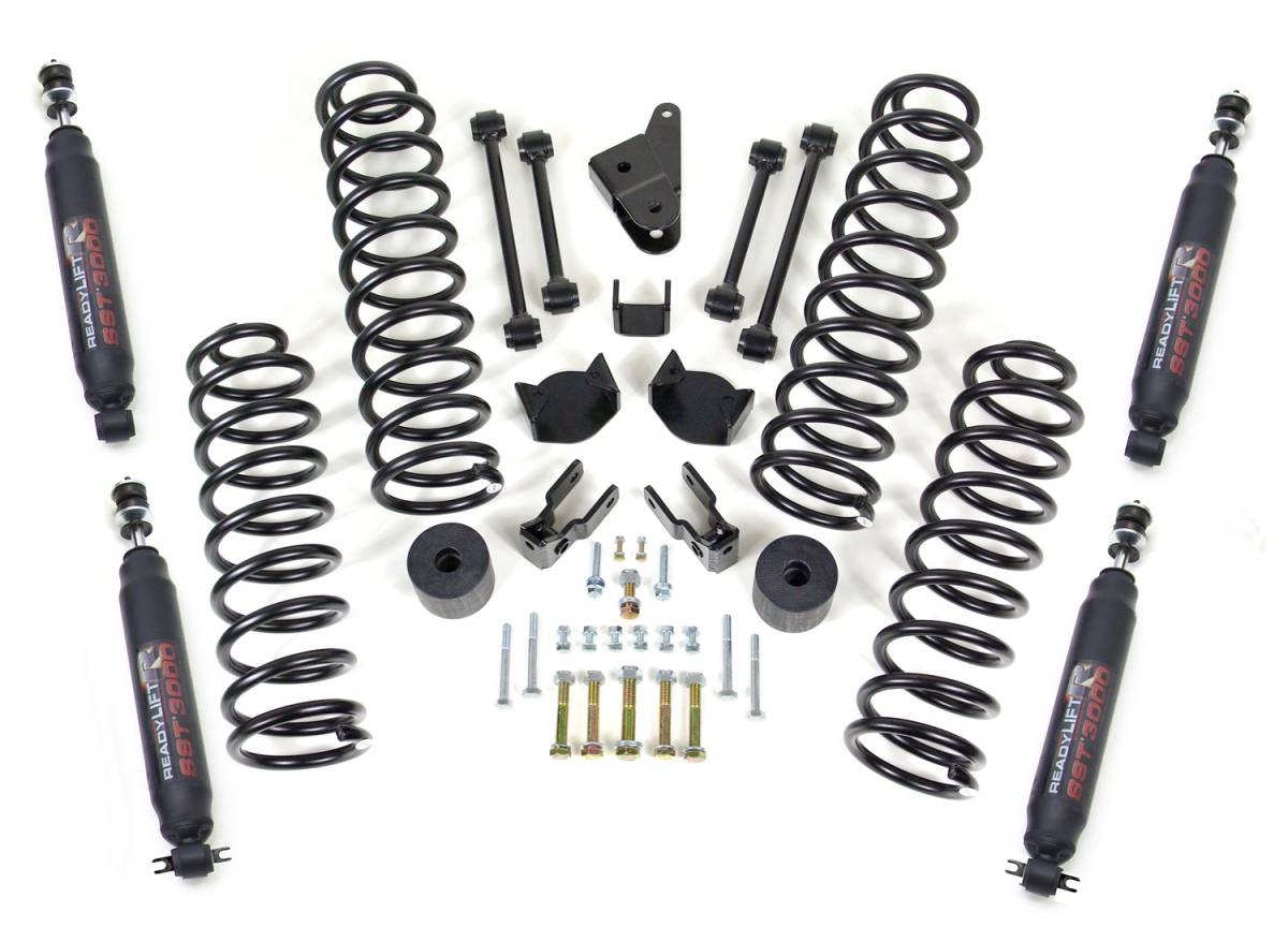 ReadyLIFT(R) Suspension is happy to announce that we have developed a new SST Lift Kit category for the Jeep JK Wrangler that is made right here in the U.S.A. These exciting new SST Lift Kits are designed to maximize the Jeep owners on and off road experience without having to break the bank! The NEW ReadyLIFT Jeep JK 8-Arm SST Lift Kits are a great option for the Jeep owner who wants more than just a lift kit, but doesn't require the need for an over-the-top expensive 8-arm suspension system. Our new control arms feature our TCT - Terrain Control Technology flex joints contained in heavy duty forged housings that bolt right up in replacement of the inferior factory control arms. This new 8-arm system allows the Jeep owner to have a lifted JK that rides great and performs outstanding even in the roughest terrain. If you want the best lift component offering in a kit that doesn't break the bank, our new 8-arm SST Lift kits are exactly what you need. Available in both 4" and 2.5" lift heights, these kits also include important bolt-on accessories such as a special designed plate steel rear track bar bracket to correct roll center and track bar placement, a new heavy duty front track bar and extended length sway bar end links keep your JK handling properly.