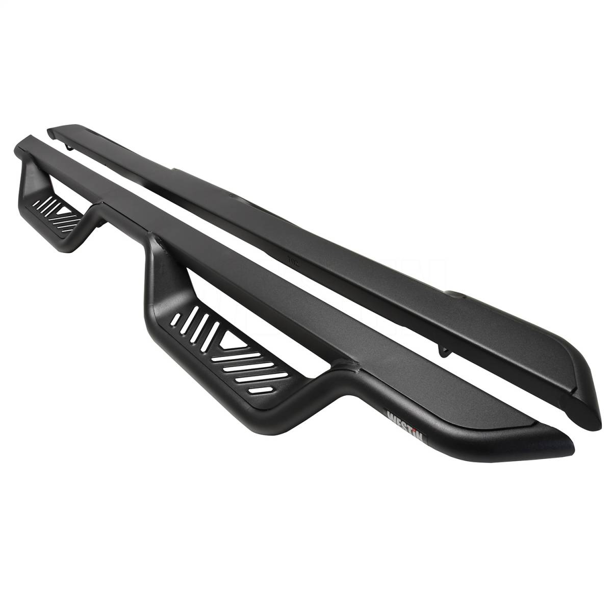 The all-new Outlaw Drop Nerf Step Bars from Westin are an affordable and stylish addition to any truck. These steps are constructed using mandrel bent 1.5" diameter tube with a welded cab length top plate. A generous 4" Drop Step with a distinctive die-stamped step plate provides maximum traction while cleaning dirt, mud, and debris from your boots before entering your truck. These stylish steps are designed to fit a wide variety of late model trucks (including most GM, Ram, Toyota, and Ford Trucks, as well as the new 2 and 4 door Bronco models). Outlaw Drop Nerf Step Bars are built to last and feature an electrostatic base coat for superior corrosion resistance, in combination with a durable textured black powder coat finish. All Outlaw Drop Nerf Step Bars come complete with all necessary hardware to provide a hassle-free installation, while a full 3-Year warranty provides peace of mind.