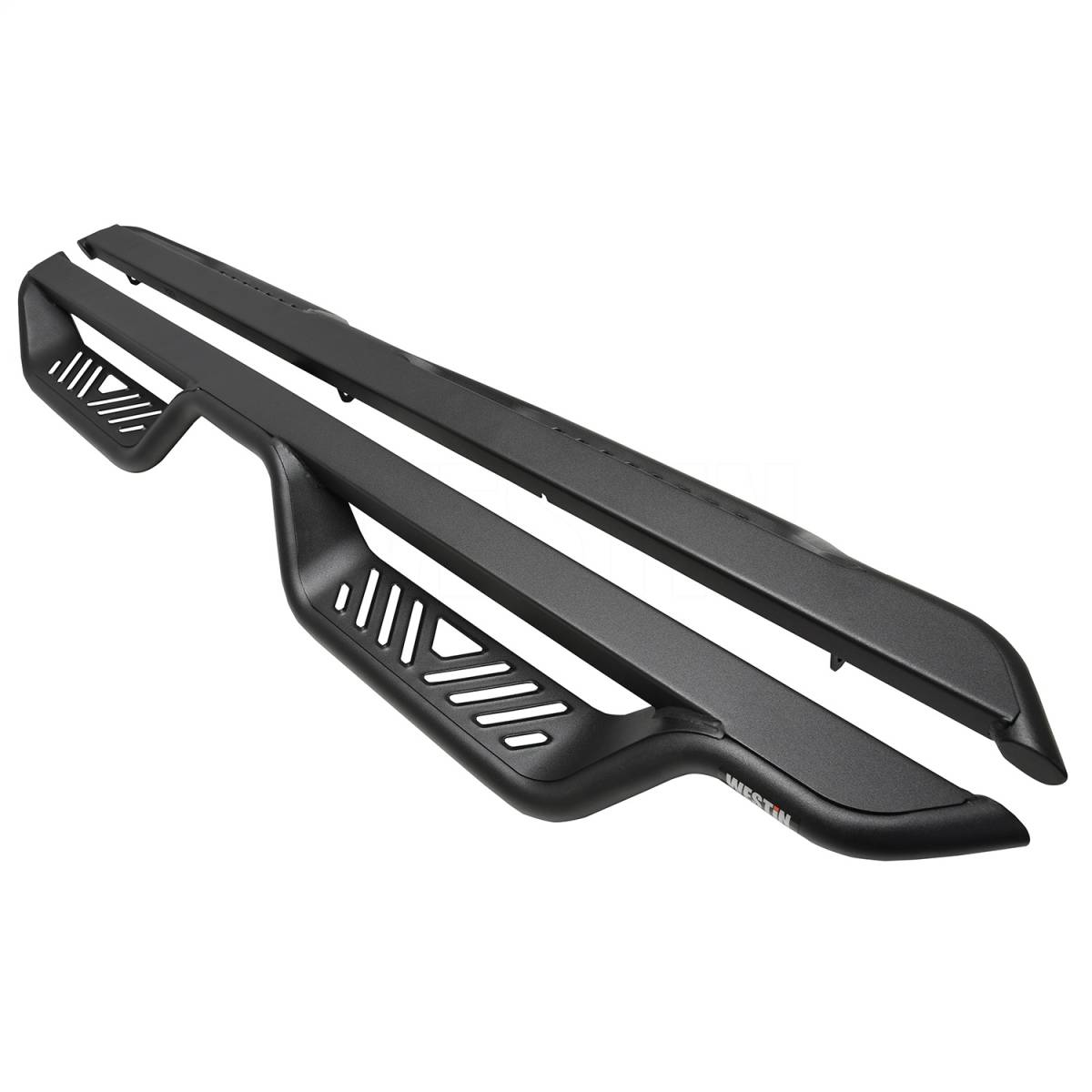 The all-new Outlaw Drop Nerf Step Bars from Westin are an affordable and stylish addition to any truck. These steps are constructed using mandrel bent 1.5" diameter tube with a welded cab length top plate. A generous 4" Drop Step with a distinctive die-stamped step plate provides maximum traction while cleaning dirt, mud, and debris from your boots before entering your truck. These stylish steps are designed to fit a wide variety of late model trucks (including most GM, Ram, Toyota, and Ford Trucks, as well as the new 2 and 4 door Bronco models). Outlaw Drop Nerf Step Bars are built to last and feature an electrostatic base coat for superior corrosion resistance, in combination with a durable textured black powder coat finish. All Outlaw Drop Nerf Step Bars come complete with all necessary hardware to provide a hassle-free installation, while a full 3-Year warranty provides peace of mind.