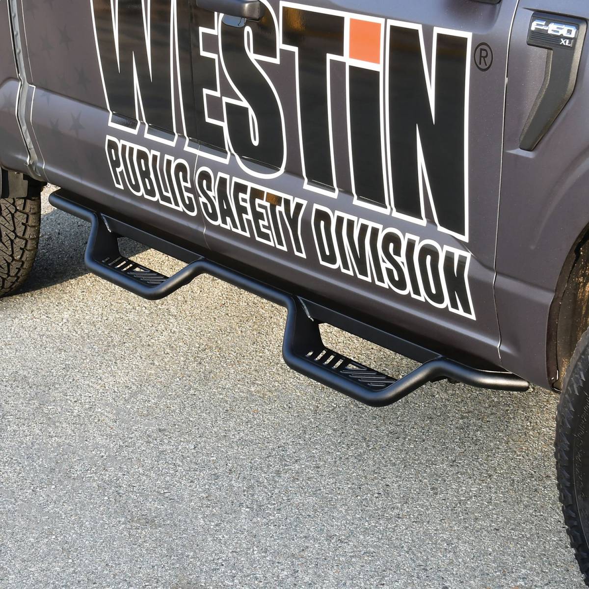 The all-new Outlaw Drop Nerf Step Bars from Westin are an affordable and stylish addition to any truck. These steps are constructed using mandrel bent 1.5" diameter tube with a welded cab length top plate. A generous 4" Drop Step with a distinctive die-stamped step plate provides maximum traction while cleaning dirt, mud, and debris from your boots before entering your truck. These stylish steps are designed to fit a wide variety of late model trucks (including most GM, Ram, Toyota, and Ford Trucks, as well as the new 2 and 4 door Bronco models). Outlaw Drop Nerf Step Bars are built to last and feature an electrostatic base coat for superior corrosion resistance, in combination with a durable textured black powder coat finish. All Outlaw Drop Nerf Step Bars come complete with all necessary hardware to provide a hassle-free installation, while a full 3-Year warranty provides peace of mind.
