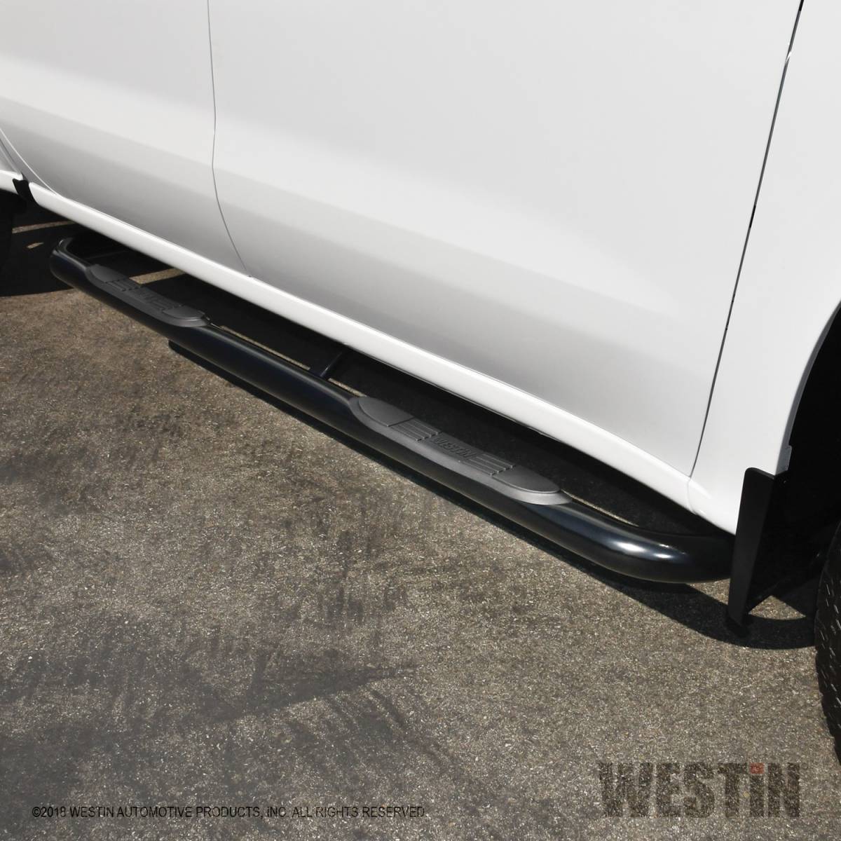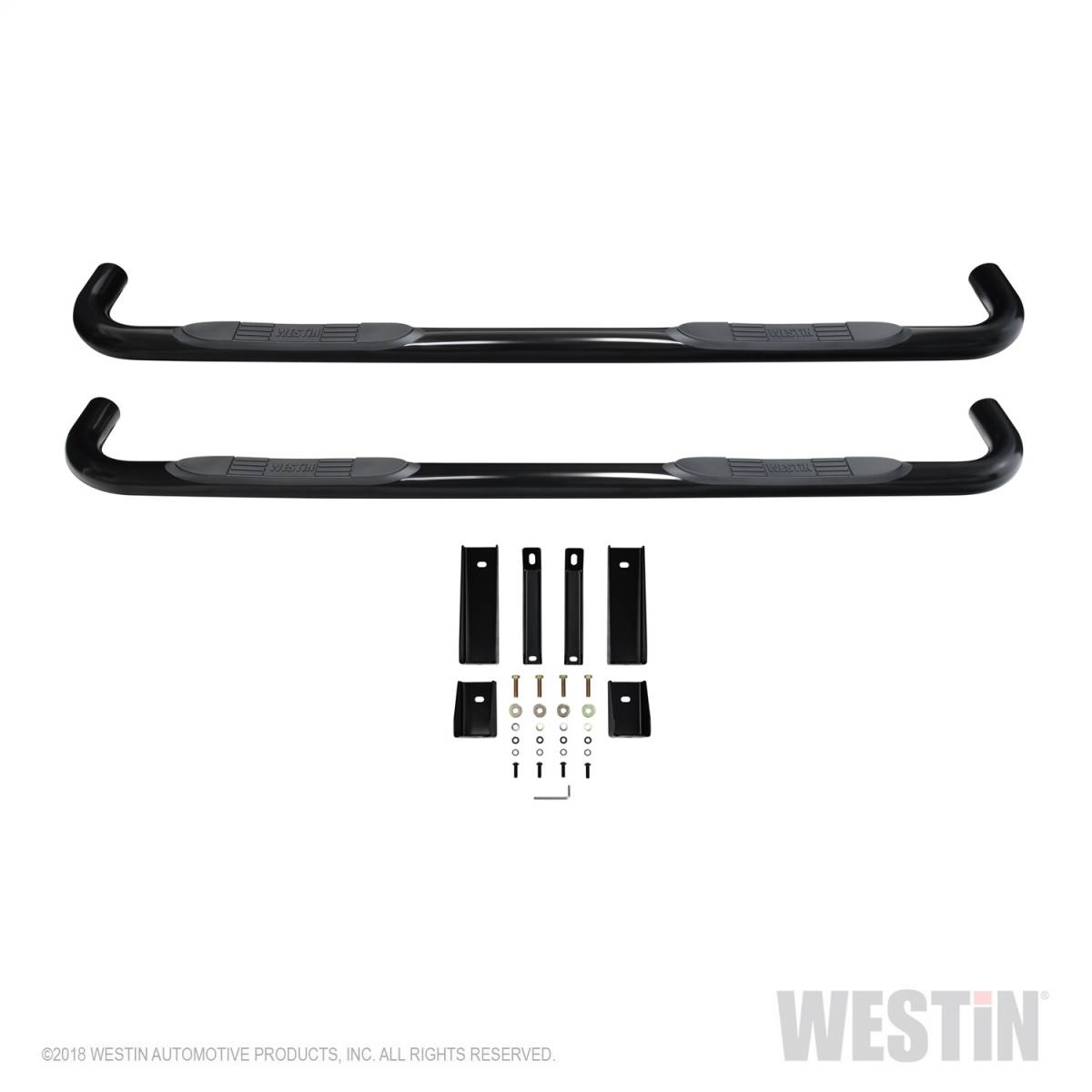 Westin(TM) E-Series Nerf Bars are made of 3in. diameter round tubing and are vehicle specific designs. Step design and mounting technique varies by application (mounting kit included). They feature recessed area mounted step pads unique to E-Series Nerf Bars feature the Westin(TM) brand name and are UV resistant.