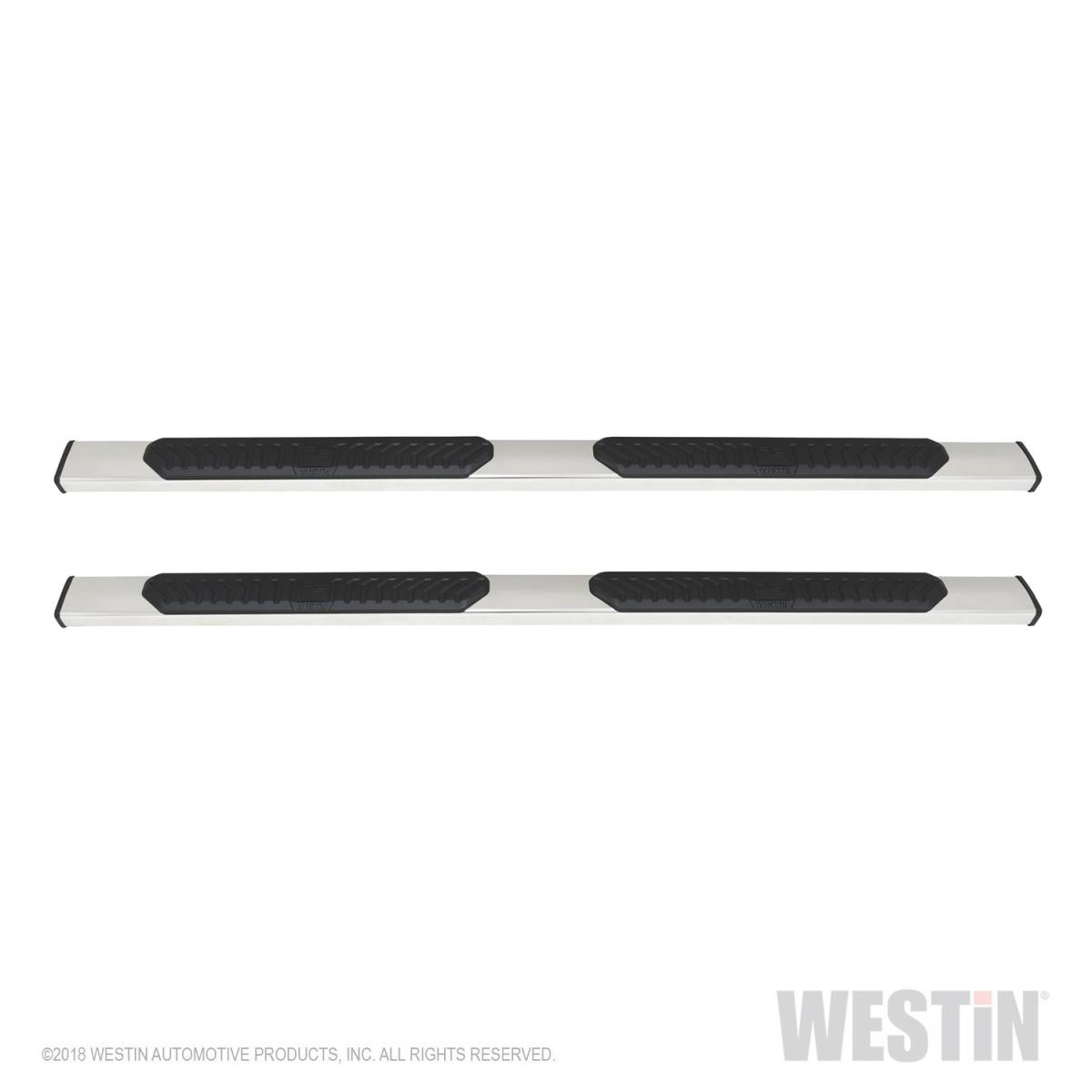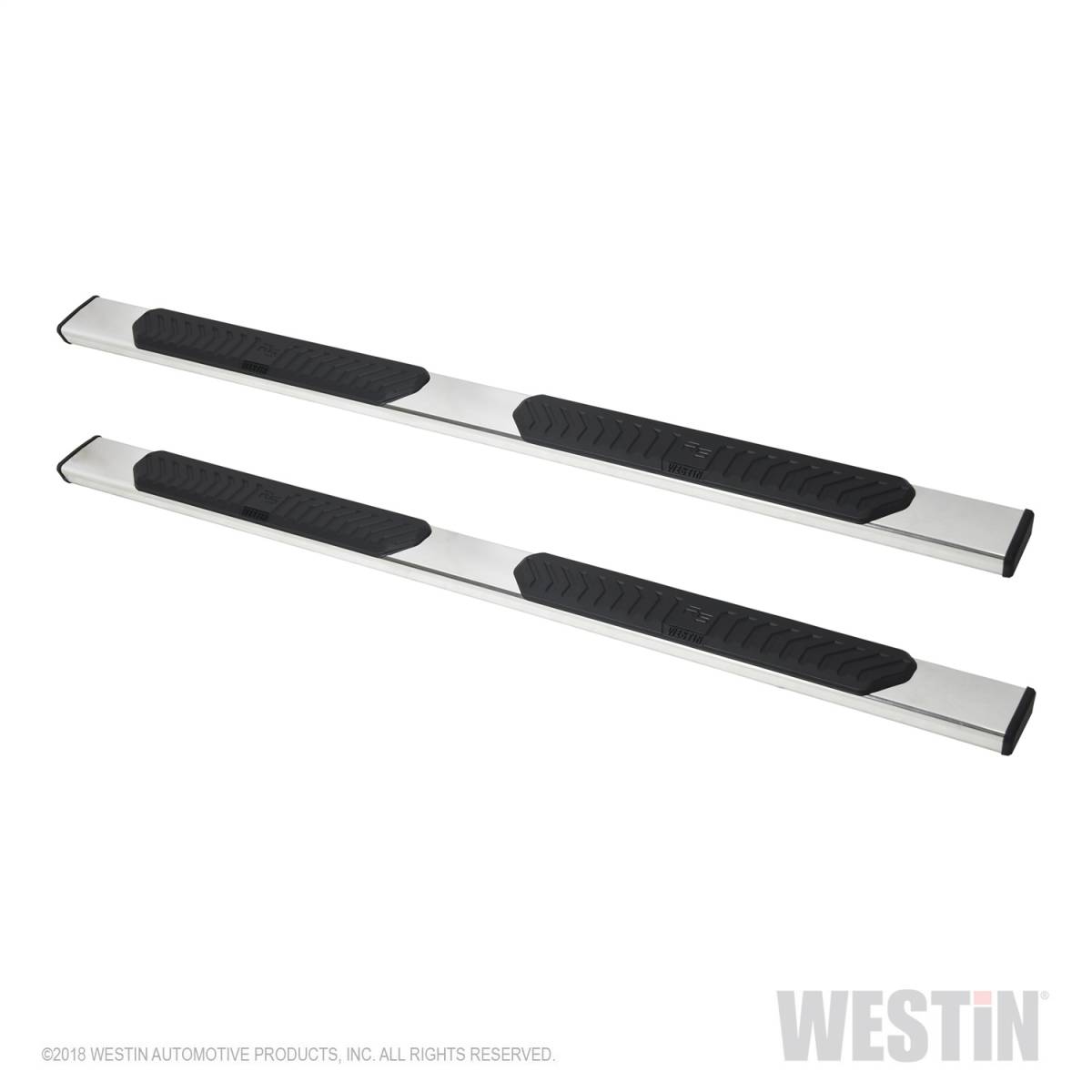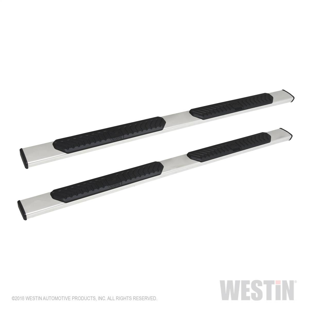 Westin R5 Nerf Step Bars have 5 inch wide step area with a unique molded polymer step pad design. R5 Nerf Step Bars are rocker panel mounted and include injection molded bracket covers for a full and stylized appearance. R5 LED Light Kit upgrade is available, sold separately.