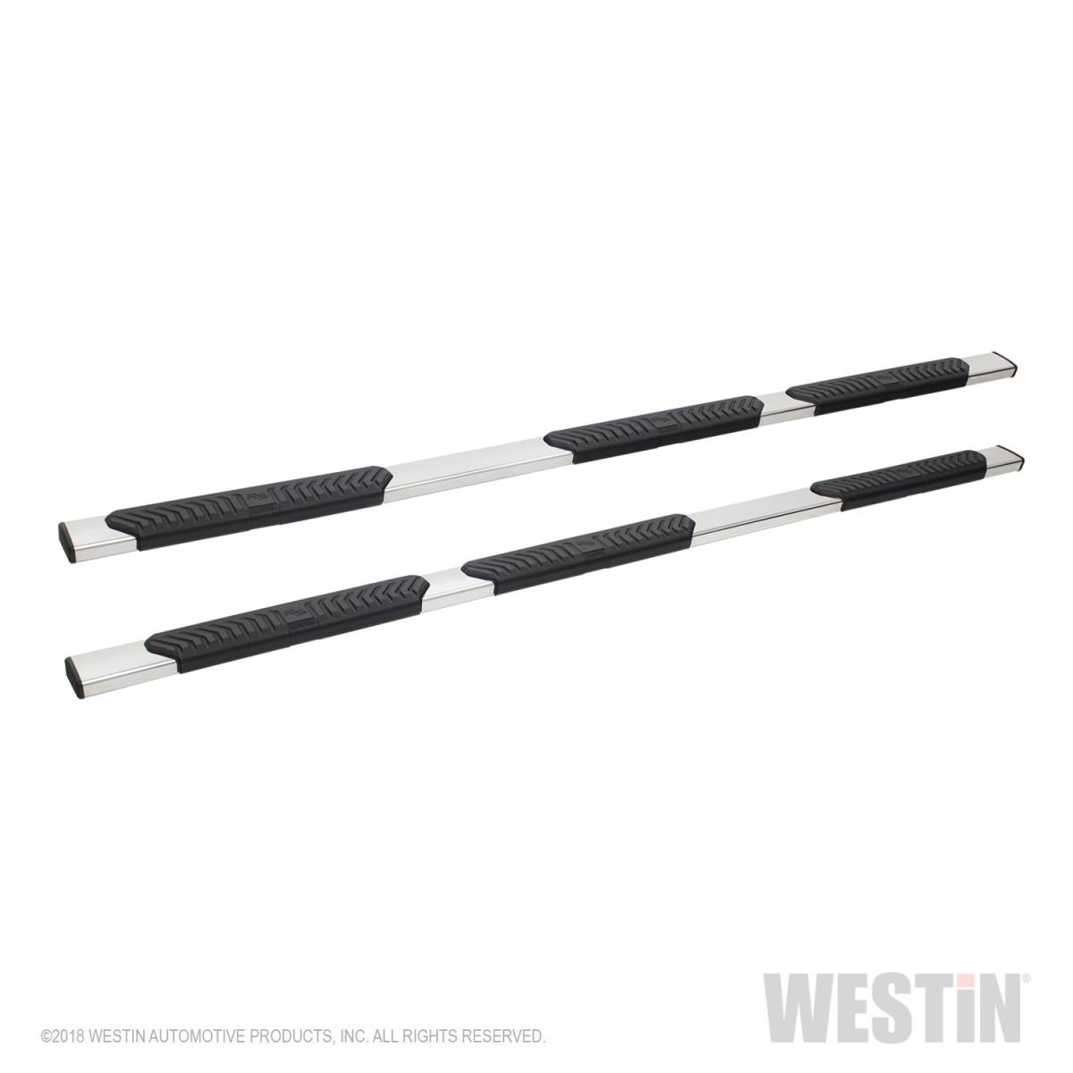 Get a boost, with Westins R5 M-Series Wheel-To-Wheel Nerf Step Bars. The extra wide 5" footprint step design provides easier and safer vehicle access for both drivers and passengers. Developed and engineered in the USA, the R5 M-Series Wheel-to-Wheel Nerf Step Bars feature three oversized skid resistant step pads allowing easy access to the vehicle cab or truck bed cargo area. Built with high-grade and corrosion resistant steel designed to mount directly to your vehicles existing rocker panels. The modular design saves you money on shipping, as no truck freight costs are required. Also included are injection molded bracket covers for a clean and stylish look. Westins exclusive Isolator Bracket supports the step bar past the truck cab, a feature that competitors do not offer. Without an Isolator Bracket, the step area that extends past the vehicle is left unsupported. Westins unique design provides added bar support without resulting in annoying creaking sounds.