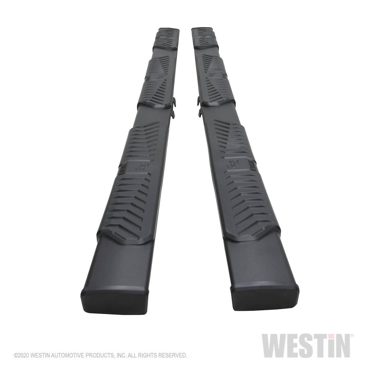 Get a boost, with Westins R5 M-Series Wheel-To-Wheel Nerf Step Bars. The extra wide 5" footprint step design provides easier and safer vehicle access for both drivers and passengers. Developed and engineered in the USA, the R5 M-Series Wheel-to-Wheel Nerf Step Bars feature three oversized skid resistant step pads allowing easy access to the vehicle cab or truck bed cargo area. Built with high-grade and corrosion resistant steel designed to mount directly to your vehicles existing rocker panels. The modular design saves you money on shipping, as no truck freight costs are required. Also included are injection molded bracket covers for a clean and stylish look. Westins exclusive Isolator Bracket supports the step bar past the truck cab, a feature that competitors do not offer. Without an Isolator Bracket, the step area that extends past the vehicle is left unsupported. Westins unique design provides added bar support without resulting in annoying creaking sounds.