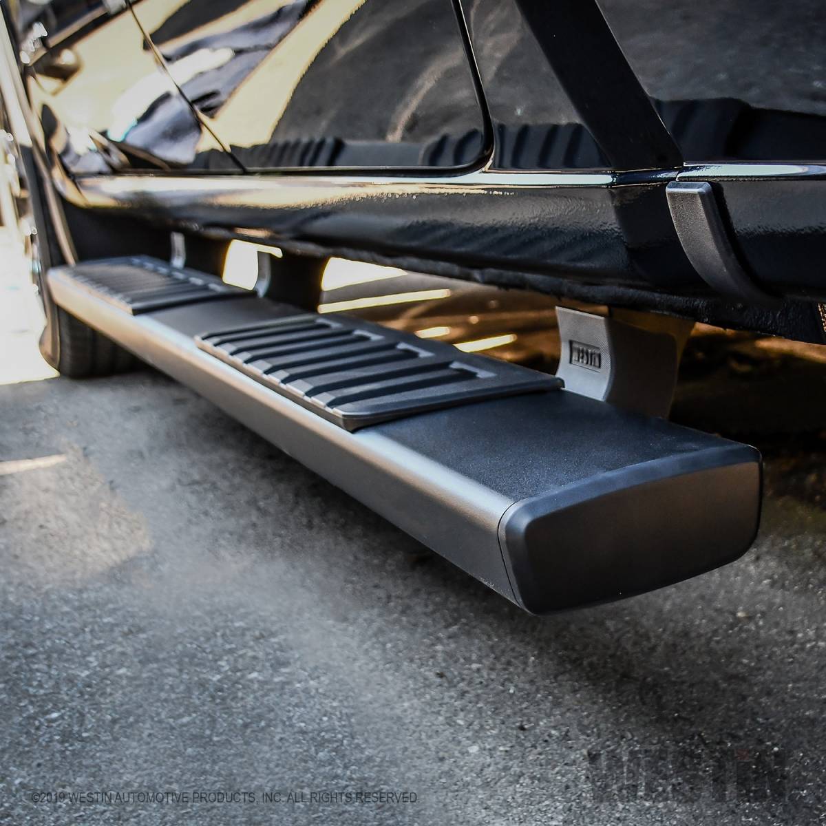 Westin R7 Boards feature oversized step pads and OE style traction grooves. R7 Boards are sold in complete kits that include: Driver and passenger-side boards vehicle specific mount kit and come with injection molded bracket covers for an extra clean look. R7 Boards are available in polished stainless steel backed by a lifetime warranty and black powder coated aluminum backed by a 3-year warranty.