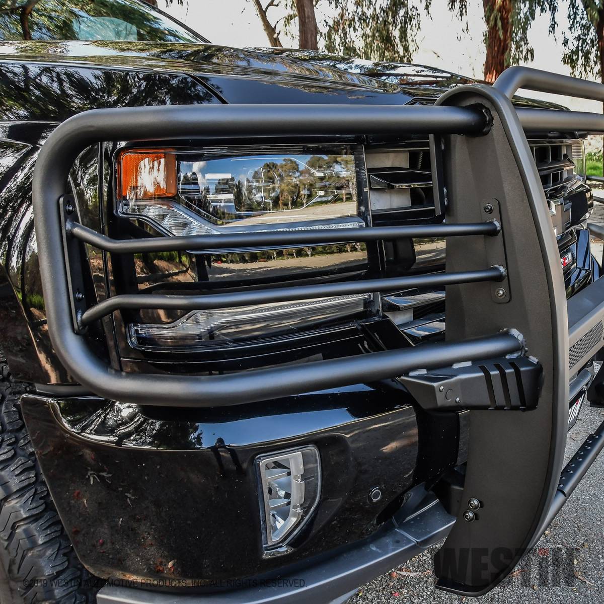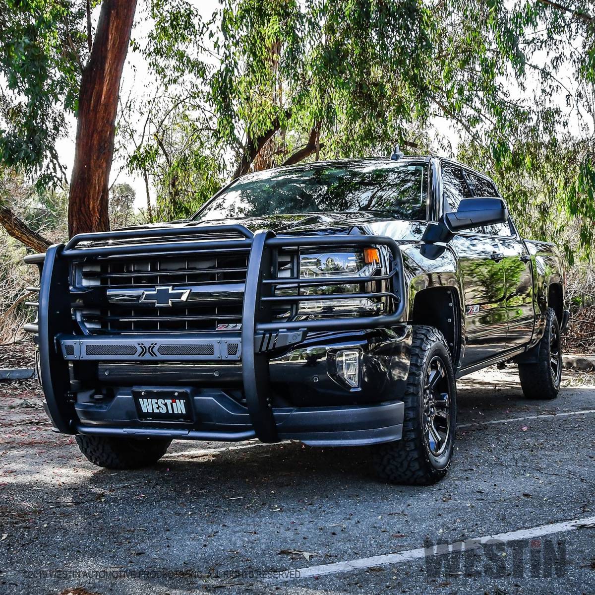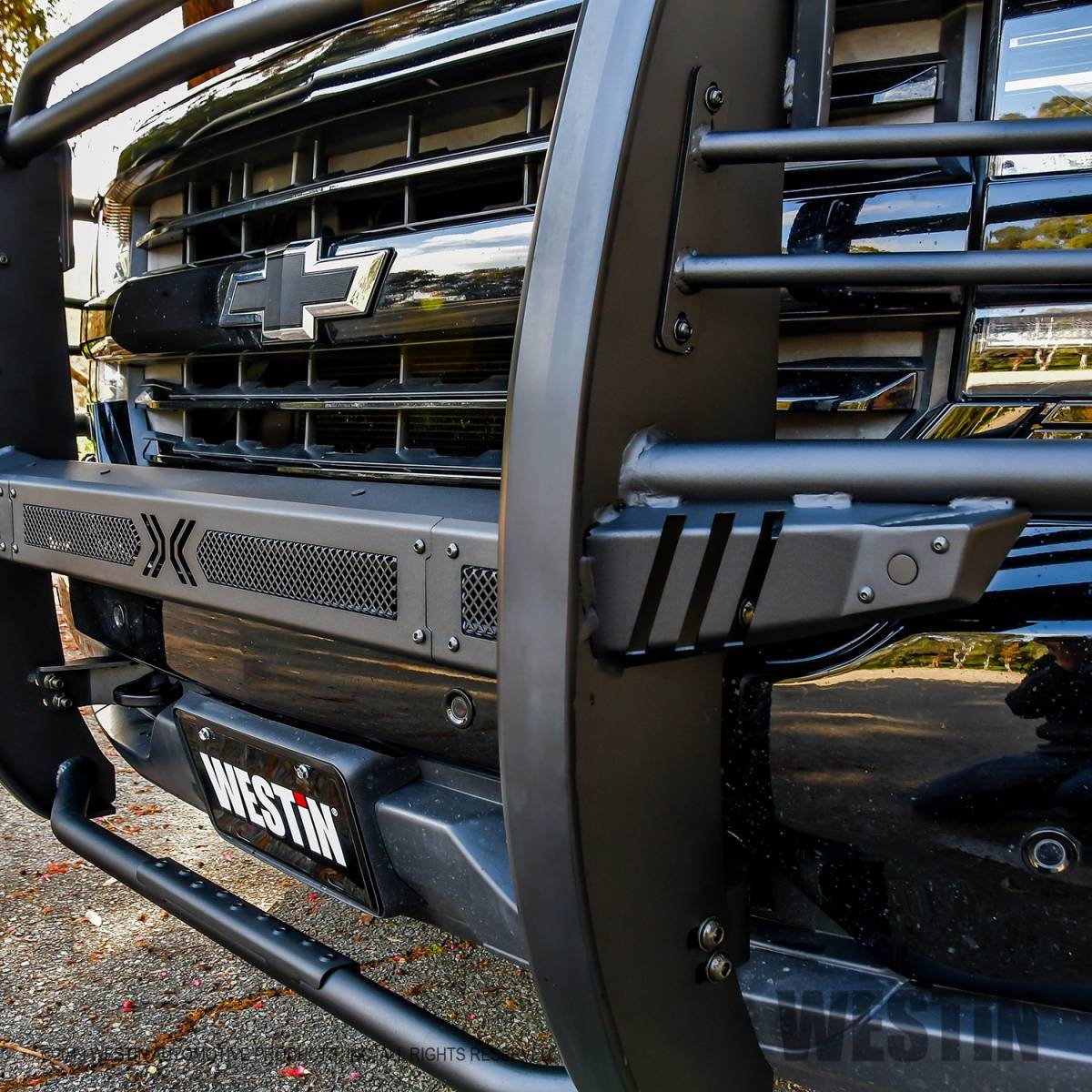 Westins Sportsman X Grille Guard effectively combines aggressive styling with heavy duty front end protection. Engineered to provide both great looks and performance, Sportsman Xs unique design compliments todays larger grille designs, and is available to fit most full and mid size truck applications. Sportsman X has an optional detachable mesh panel (sold separately) which is specifically designed to fit the opening in the center section of Sportsman X Grille Guard, or can be removed to accommodate the flush mounted 26" dual row LED light bar (sold separately). A smaller removable mesh panel designed for the factory sensor location opening is included as standard with Sportsman X. For specific Chevy and Dodge/RAM applications a Sportsman X Sensor Kit (sold separately) is available. An exterior step plate is located on the 1-5/8" bottom tube to provide easy access to the engine compartment. Built with heavy duty 2-1/4" upright rubber strips and 1- 5/8" outer tubes, Sportsman X Grille Guard is designed to provide protection and style for years to come.