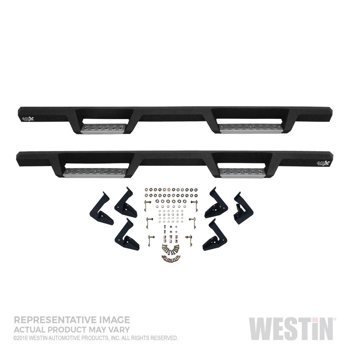 Westin's HDX Stainless Drop Nerf Step Bars are built with corrosion-resistant, textured black painted stainless steel designed to last under the toughest of conditions. With 1-piece construction, these nerf step bars provide over 2 added inches of toe/heel step area than our competitors and fit tight to the vehicle's rocker panel for a solid fit and rugged look. HDX Stainless Drop Nerf Step Bars include stainless steel step pads. Step plates are rust resistant and provide maximum traction. Bolt-on installation with no drilling is required. Includes mount kit.