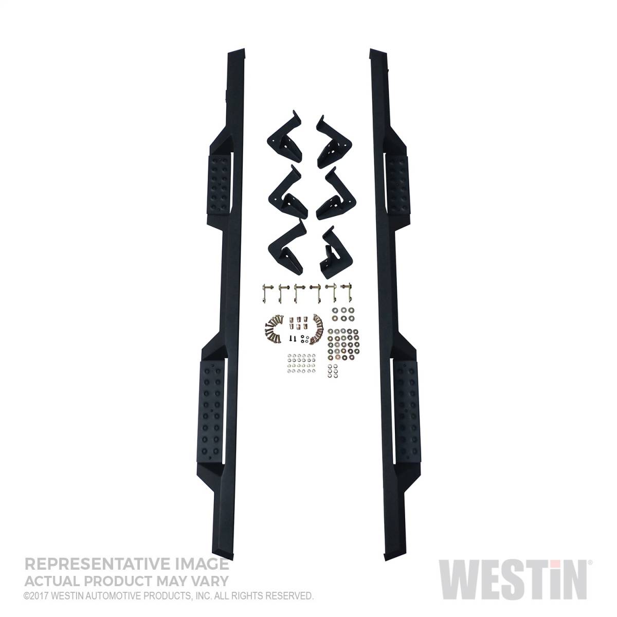Westins HDX Drop Nerf Step Bars provide the rugged look and function that truck owners need and want. They feature a solid 1-piece steel construction and heavy duty punch plates creating high traction step areas. The HDX Drop Nerf Step Bars also feature Westins notched bar design which provides more than 2" of additional toe/heel placement versus competitive brands. Available in a textured black finish that complements Westin HDX Bumpers. The HDX Drop Steps have vehicle specific applications and include a vehicle specific mount kit, installation hardware and instructions.