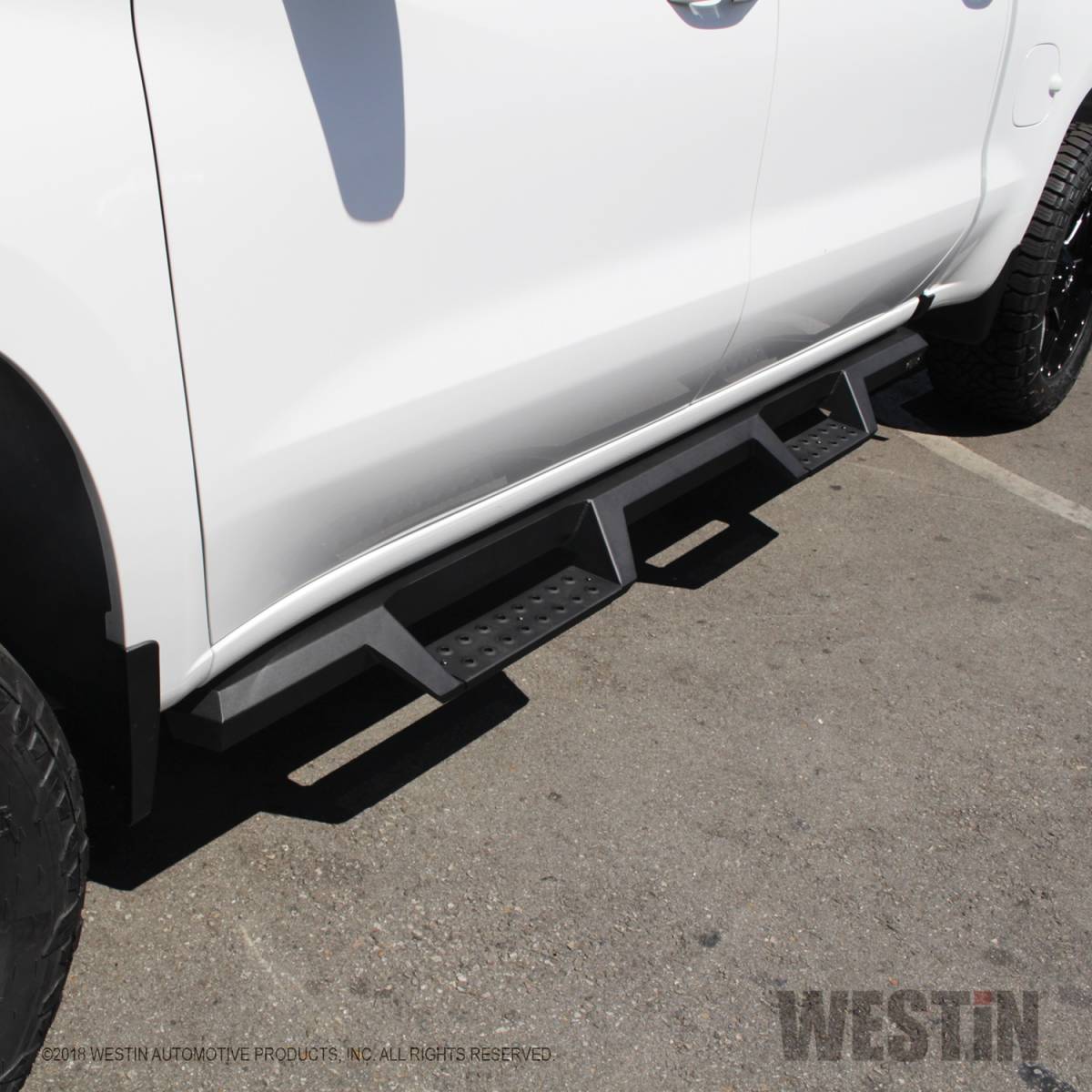 Westins HDX Drop Nerf Step Bars provide the rugged look and function that truck owners need and want. They feature a solid 1-piece steel construction and heavy duty punch plates creating high traction step areas. The HDX Drop Nerf Step Bars also feature Westins notched bar design which provides more than 2" of additional toe/heel placement versus competitive brands. Available in a textured black finish that complements Westin HDX Bumpers. The HDX Drop Steps have vehicle specific applications and include a vehicle specific mount kit, installation hardware and instructions.