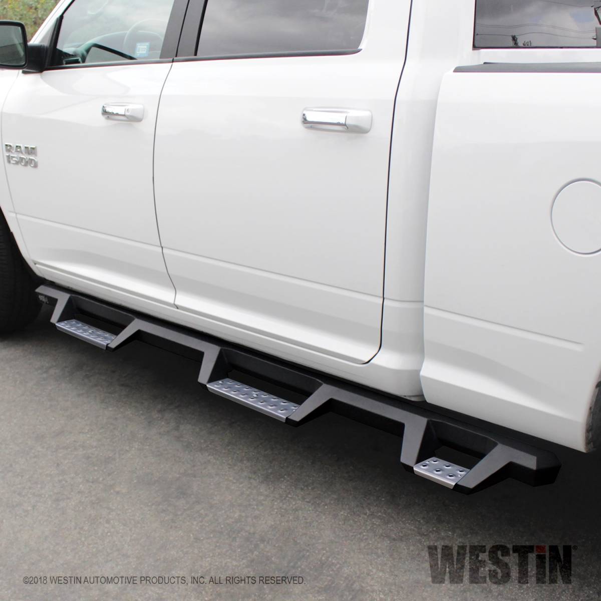 Westin's HDX Stainless Drop W2W Nerf Step Bars are built with corrosion-resistant, textured black painted stainless steel designed to last under the toughest of conditions. Built with 1-piece construction, these Nerf Step Bars feature a notched bar design with a 3rd step location for easy bed access and provide over 2 more inches of toe/heel step area than our competitors. The longer length of our HDX Stainless Drop WTW Nerf Step Bars provides added vehicle accessability, with the bar still fitting tight to your vehicle's rocker panel for a solid fit and rugged look. Product includes a set of installed stainless steel step pads as well as a set of black mild steel step pads so you can switch plates out based on preference. Step plates are rust resistant and provide maximum traction. Bolt-on installation so no drilling is required. Includes Mount Kit. Westin's exclusive Isolator Bracket supports the step bar past the truck cab, a feature that competitors do not offer. Without an Isolator Bracket, the step area that extends past the vehicle is left unsupported. Our unique design provides extra bed support without resulting in annoying creaking sounds.
