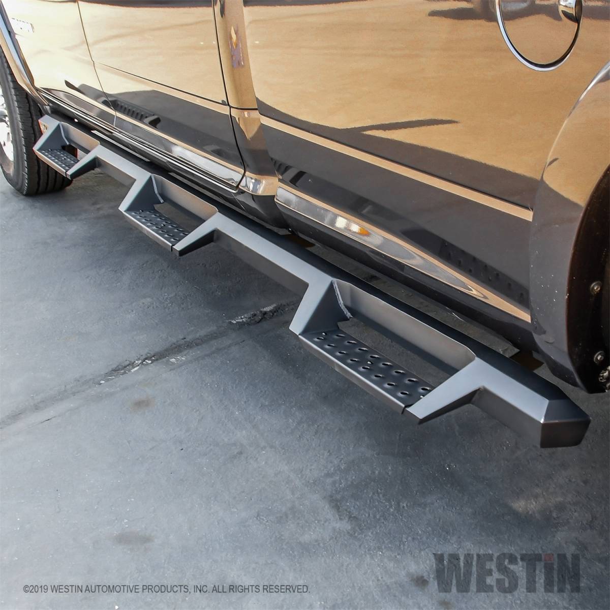 Westins HDX Drop Wheel-to-Wheel Nerf Step Bars feature a notched bar design with a 3rd step location for easy bed access. They provide strong traction with over 2 inches more of toe/heel step area than our Westin's HDX Drop W2W Nerf Step Bars include an added 3rd step location for easier bed area and cargo access. HDX also boasts more than 2 inches of added toe/heel step area which far exceeds all other competitive brands. HDX's notched bar design construction results in a reliable long lasting Bar, with a solid fit and a rugged look. The added length of HDX Drop Wheel-to-wheel Nerf Step Bars provides users with better cab access and better footing and traction for both drivers and passengers. Product includes mount kit and is offered in a variety of vehicle specific applications. Bolt-on installation so no drilling required. Mount kit included. Westin's exclusive Isolator Bracket supports the step bar past the truck cab, a feature that competitors do not offer. Without an Isolator Bracket, the step area that extends past the vehicle is left unsupported. Our unique design provides extra bed support without resulting in annoying creaking sounds.