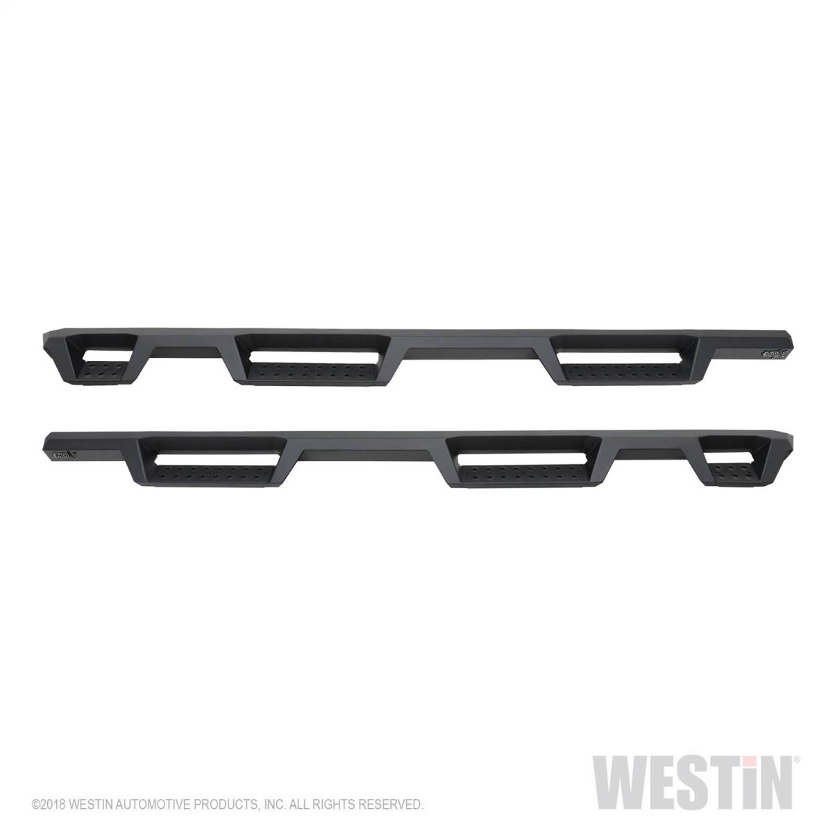 Westins HDX Drop Wheel-to-Wheel Nerf Step Bars feature a notched bar design with a 3rd step location for easy bed access. They provide strong traction with over 2 inches more of toe/heel step area than our Westin's HDX Drop W2W Nerf Step Bars include an added 3rd step location for easier bed area and cargo access. HDX also boasts more than 2 inches of added toe/heel step area which far exceeds all other competitive brands. HDX's notched bar design construction results in a reliable long lasting Bar, with a solid fit and a rugged look. The added length of HDX Drop Wheel-to-wheel Nerf Step Bars provides users with better cab access and better footing and traction for both drivers and passengers. Product includes mount kit and is offered in a variety of vehicle specific applications. Bolt-on installation so no drilling required. Mount kit included. Westin's exclusive Isolator Bracket supports the step bar past the truck cab, a feature that competitors do not offer. Without an Isolator Bracket, the step area that extends past the vehicle is left unsupported. Our unique design provides extra bed support without resulting in annoying creaking sounds.