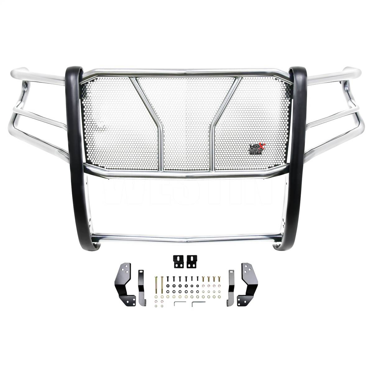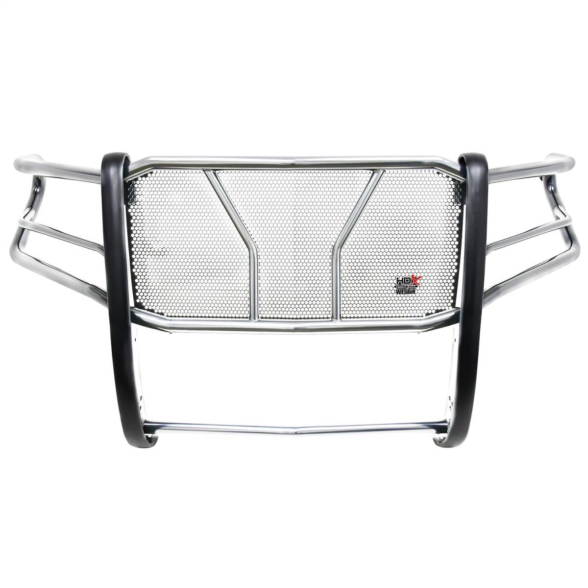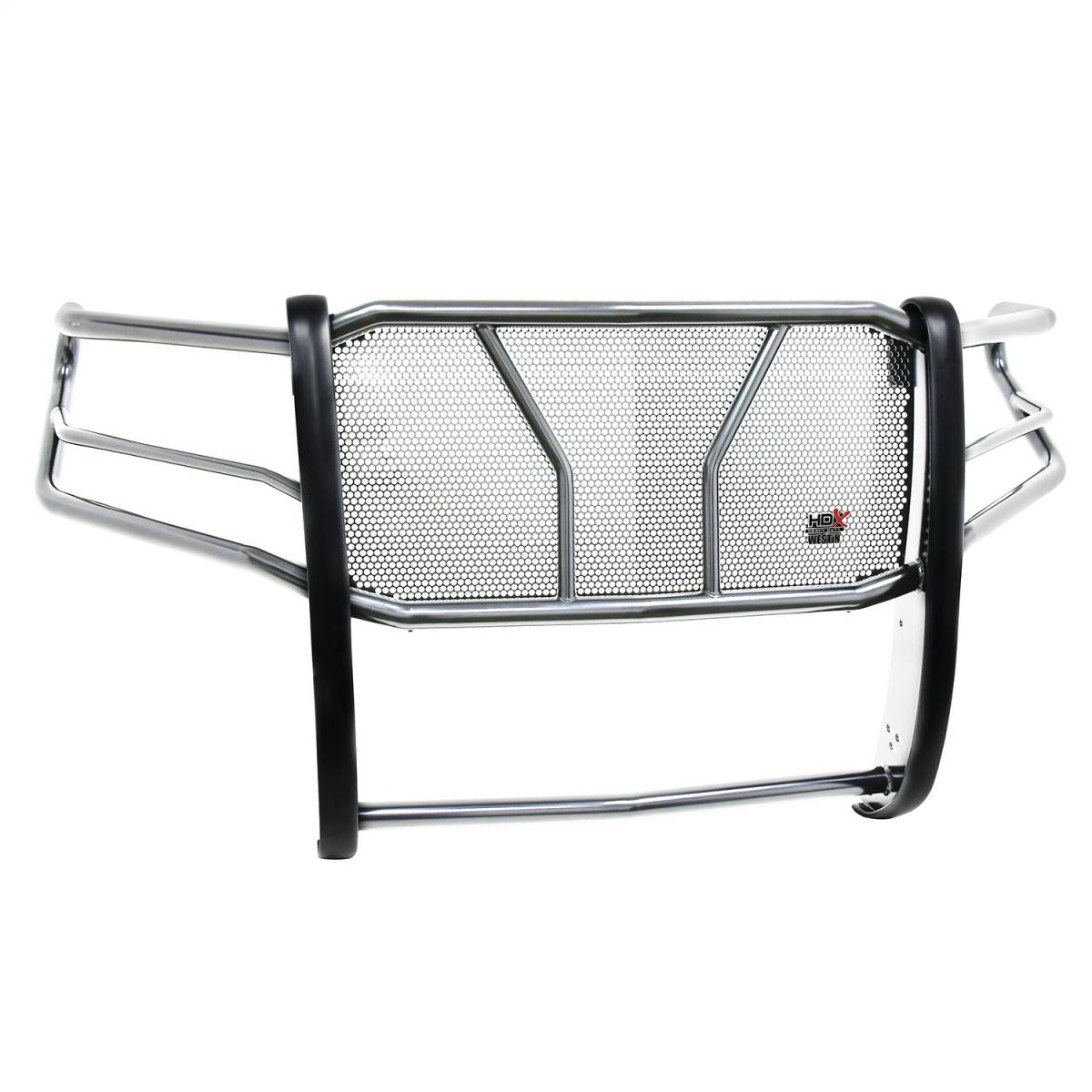 The HDX Grille Guard is the ultimate in extreme truck gear. Its a fully welded 1-piece grille guard that features full wraparound wings made of heavy duty 2" diameter tube. Uprights are finished and protected with extra wide rubber that is 1/8" thick and 2 3/4" wide resulting in a solid clean look. The full punch plate grille protects the vehicles grille area. HDX Grille Guards are available in stainless and black powder coat finish.