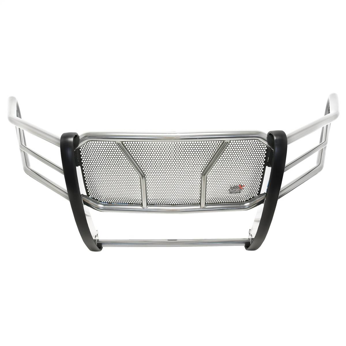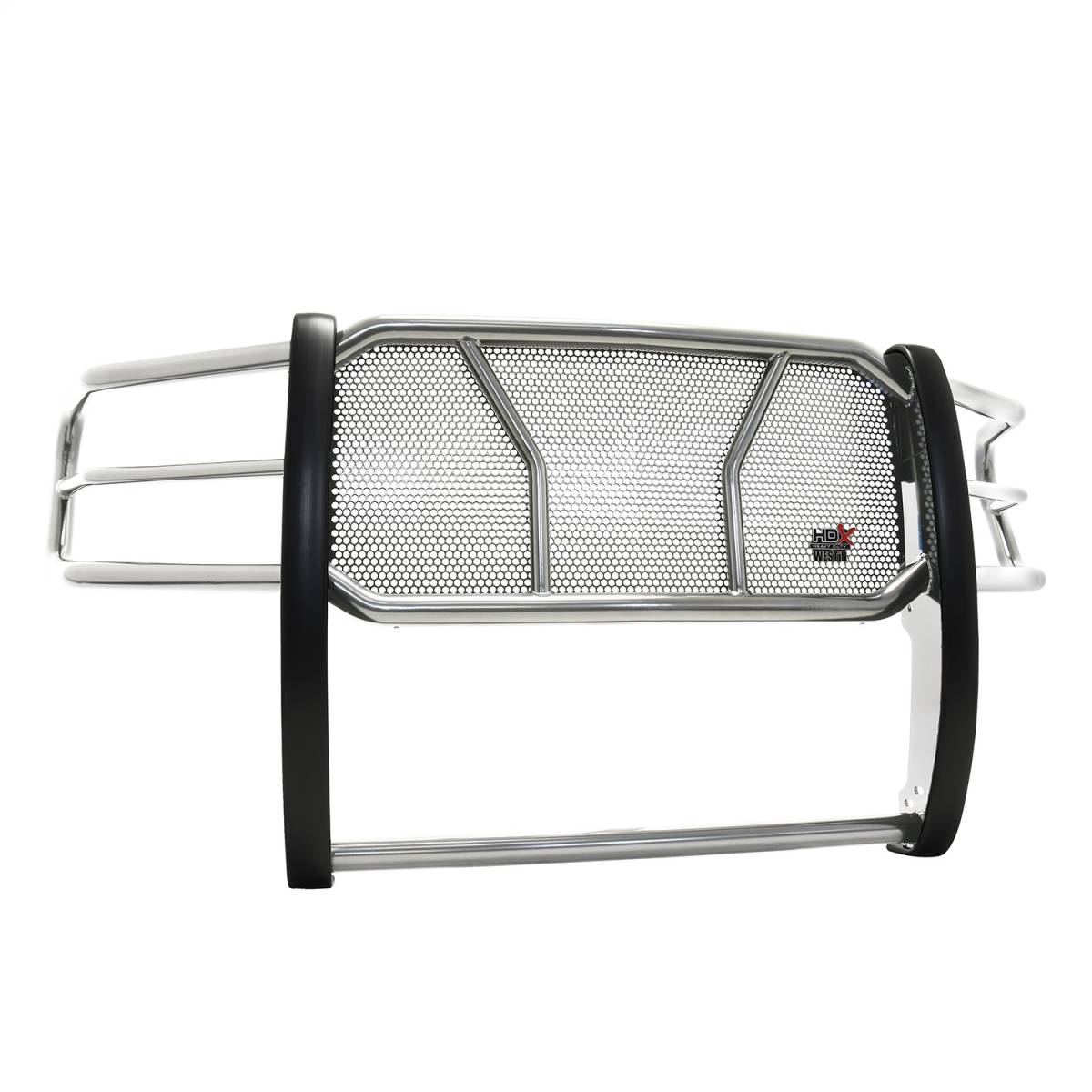 The HDX Grille Guard is the ultimate in extreme truck gear. Its a fully welded 1-piece grille guard that features full wraparound wings made of heavy duty 2" diameter tube. Uprights are finished and protected with extra wide rubber that is 1/8" thick and 2 3/4" wide resulting in a solid clean look. The full punch plate grille protects the vehicles grille area. HDX Grille Guards are available in stainless and black powder coat finish.