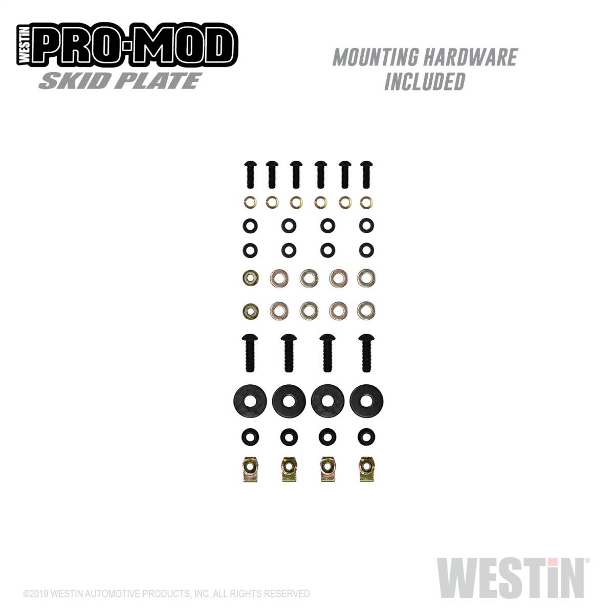 Westin's Pro-Mod Skid Plate is constructed of durable 10 gauge steel to protect your vehicle from damage caused by road debris. It mounts directly to the frame and includes a laser-cut Westin logo. Offers bolt-on installation so no drilling is required. Hardware and mounting brackets included.