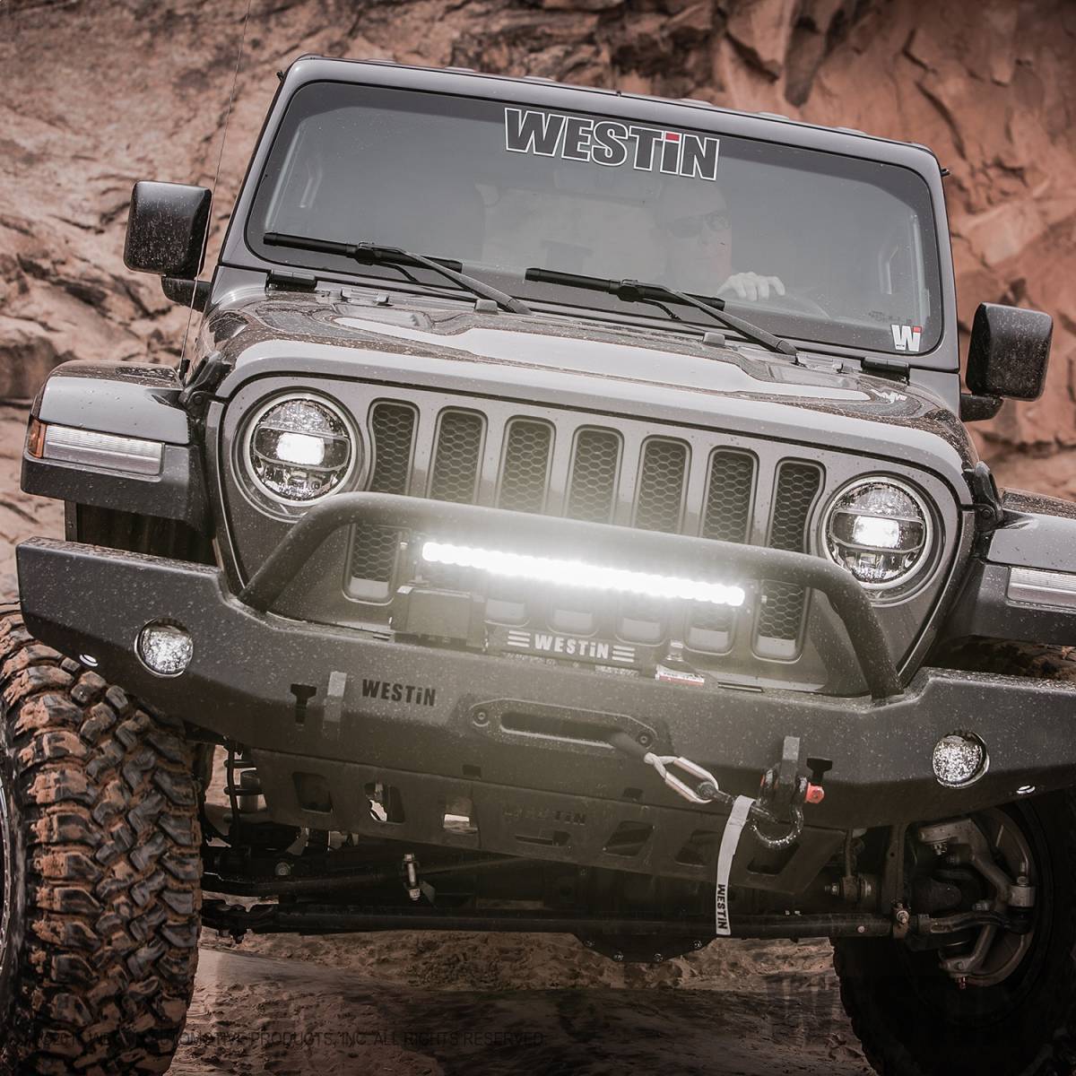 Westins WJ2 Full Width Front Bumper with Bull Bar is constructed with 3/16-inch plate steel and fits most double or single row 20 light bars. The Bull Bar on our new WJ2 Stubby Bumper is designed to mount and protect your light bar. The product is designed to utilize both styles of factory fog lights or round post lights. With Westins new WJ2 Full Width Bumper, your winch fits inside the bumper to allow maximum air flow to your vehicles radiator and is designed to allow winch installation with your bumper already installed – most other brands wont! Features Rock Light mount points on lower bumper corners, holes to hide light harness wires, and 2 front off-road jack points. Product offers recovery hooks with a recovery shackle mount point to allow easy tow strap attachment. Includes bumper, mounting hardware and install instructions.