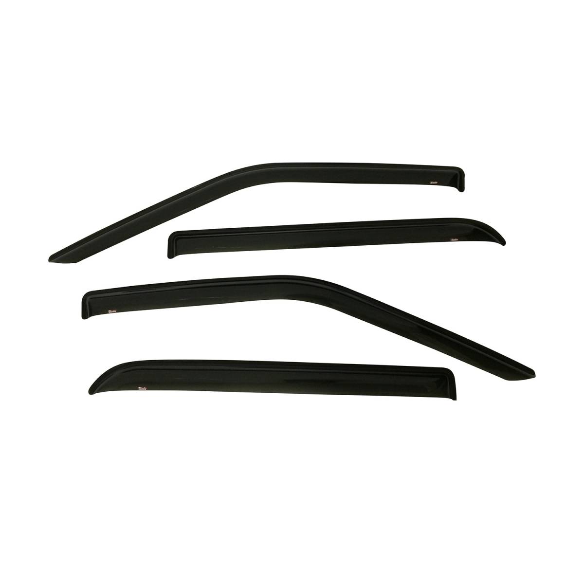 Tape On Wind Deflectors are a quick and quality solution to reducing wind, noise, heat, and glare without compromising the entry of fresh air when windows are rolled down slightly. They attach easily into position with 3M automotive grade tape on to the vehicle's outer window frame. Wind deflectors promote the circulation of fresh air while minimizing its volume and strength as it re-directs it up and into, or out of the vehicle. Their sleek design deflects wind and noise from entering the vehicle for a more pleasant ride any time of year. They are made from high-gloss smoke acrylic, and have transparency, so, visibility is never obstructed.