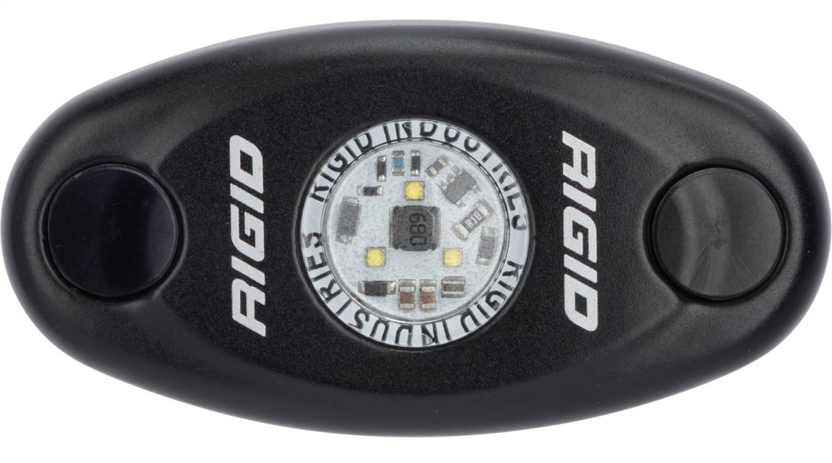 RIGIDs A-Series LED Accessory Light is a universal light that can be used just about anywhere. Vehicle cabs, boat cabins, work vehicle beds, under the hood of a vehicle and trunks are just a few of the places where the A-Series can provide handy bright lighting in otherwise dark environments. The A-Series has a durable compact aluminum housing and includes rubber flat-mount, 3M VHB permanent tape, 2 way pad for flat mounting, and radius tube-mount adapters, which provide side or bottom wire exits to accommodate different applications. It is lightweight, waterproof, and available in a variety of different LED colors in high and low power versions. The versatility of the A-Series makes it an easy installation on almost anything. Own The Night with RIGIDs compact A-Series LED lights.