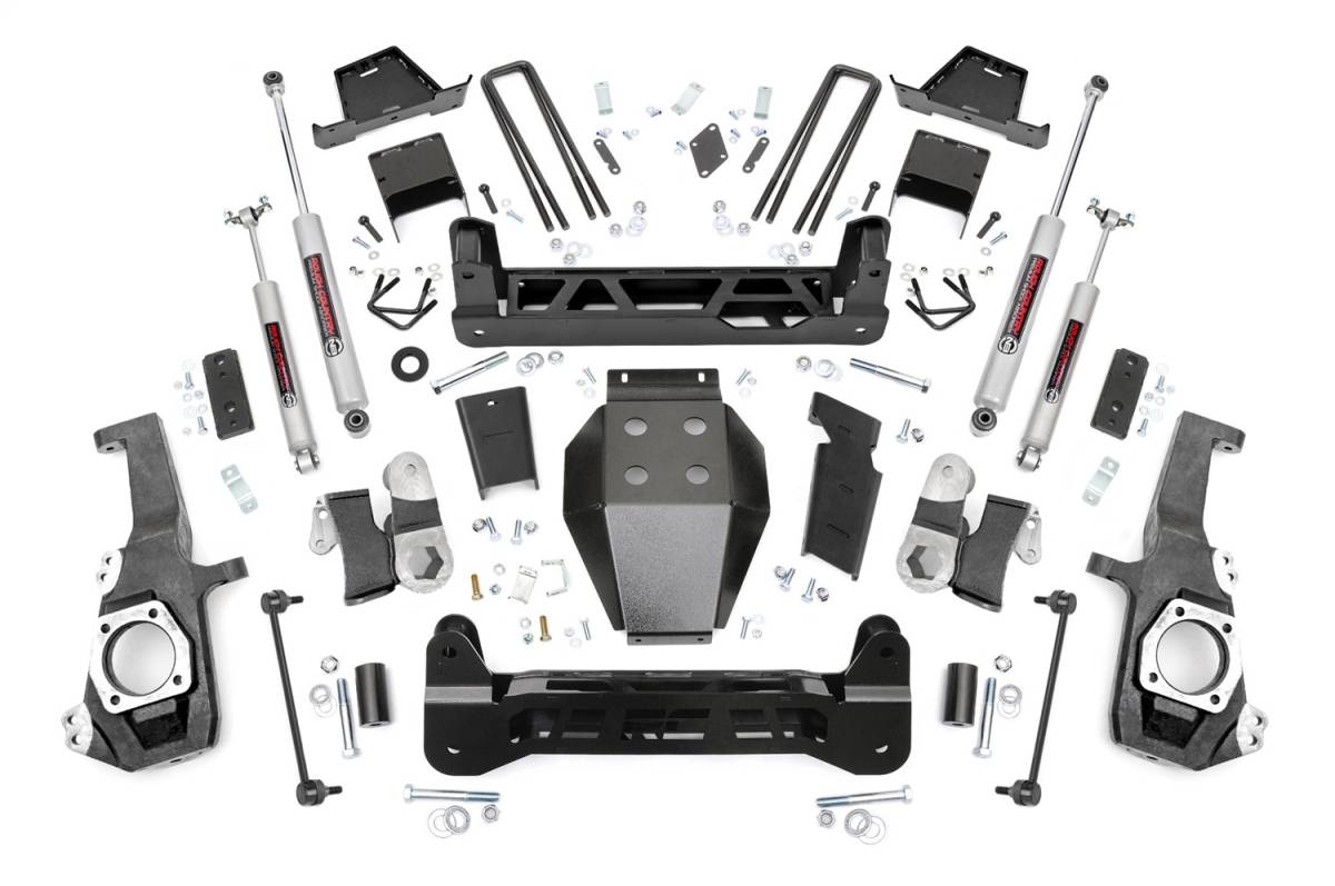 Give your HD a total transformation that complements the look of your new truck with Rough Countrys Non-Torsion Drop 7-inch Suspension Lift Kit. This all-inclusive kit comes with everything you need to give your truck an aggressive look and enough increased ride height to run up to 37-inch tires with a non-torsion drop design that keeps everything looking flush and clean underneath. GMs 2020 HD 2500 received a major redesign. Once lifted, this truck transforms into an absolute monster that will keep you smiling every time you see it. While some kits on the market leave your torsion bars hanging in plain view, Rough Countrys 7-inch lift features a non-torsion drop design that keeps everything tucked in and tidy, effectively giving you more ground clearance and a much cleaner look that fits in better with the overall design of your new truck. This kit also includes a set of front and rear crossmembers that are laser cut from durable US steel for a precise fit and feature an 'œRC' logo that displays prominently at the front of the vehicle. Each kit also features lifted knuckles, a beefy differential skid plate, and a set of Rough Countrys N3 Nitrogen-charged shock absorbers that provide an incredibly smooth, factory-like ride quality both on and off-road. A set of rear anti-wrap rear blocks help prevent axle wrap even under the tremendous torque provided by this Ÿ ton truck. Best of all, this kit features Rough Countrys Lifetime Replacement Guarantee!