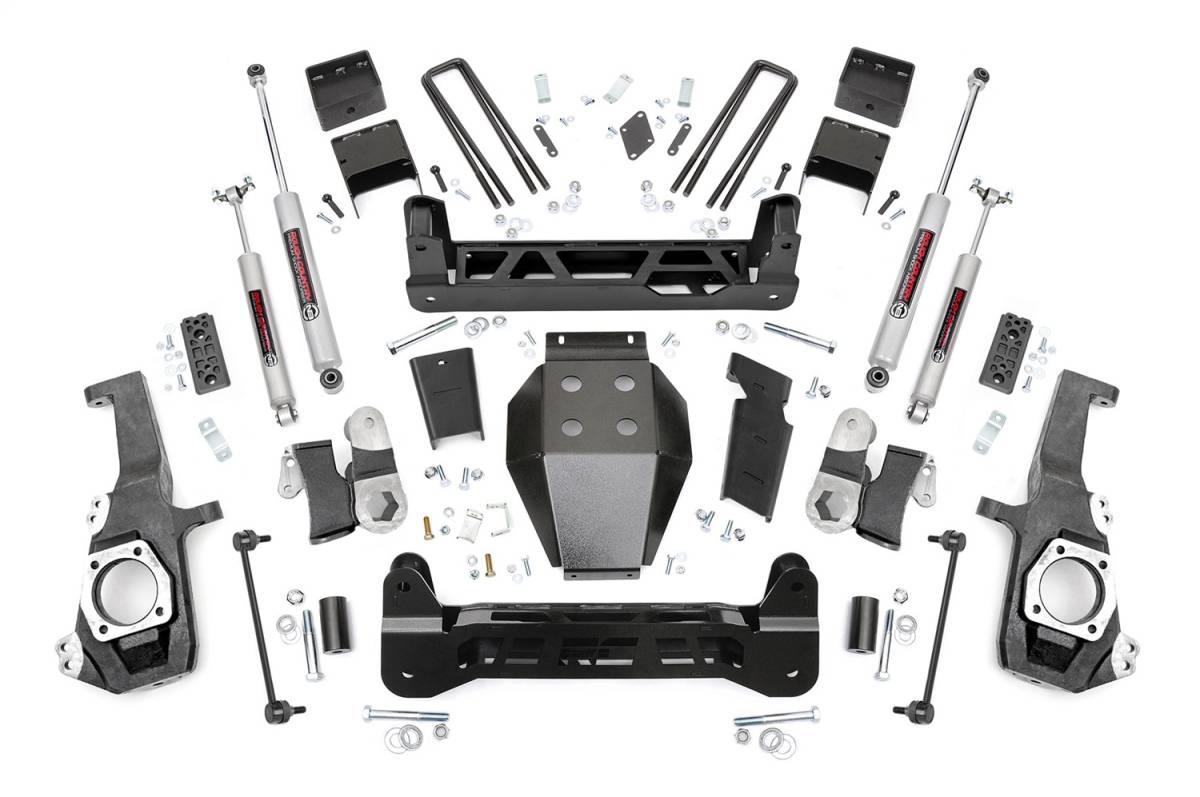 Give your HD a total transformation that complements the look of your new truck with Rough Countrys Non-Torsion Drop 5-inch Suspension Lift Kit. This all-inclusive kit comes with everything you need to give your truck an aggressive look and enough increased ride height to run up to 35-inch tires with a non-torsion drop design that keeps everything looking flush and clean underneath. GMs 2020 HD 2500 received a major redesign. Once lifted, this truck transforms into an absolute monster that will keep you smiling every time you see it. While some kits on the market leave your torsion bars hanging in plain view, Rough Countrys 5-inch lift features a non-torsion drop design that keeps everything tucked in and tidy, effectively giving you more ground clearance and a much cleaner look that fits in better with the overall design of your new truck. This kit also includes a set of front and rear crossmembers that are laser cut from durable US steel for a precise fit on your vehicle and feature an 'œRC' logo that displays prominently at the front of the vehicle. Each kit also features lifted knuckles, a beefy differential skid plate, and a set of Rough Countrys N3 Nitrogen-charged shock absorbers that provide an incredibly smooth, factory-like ride quality both on and off-road. Best of all, this kit features Rough Countrys Lifetime Replacement Guarantee!