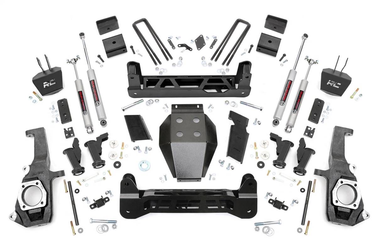 Right off the lot The GM 2500 HD has an impressive stance and a killer look, inspiring Rough Country to build a kit that would add crucial enhancements while taking nothing away from this sharp looking, new model truck. The 5 in. N3 Suspension Lift for GM 2500 HD features a Torsion Drop Design for better ride quality and handling while maintaining proper angles in a factory fashion. This kit also features Heavy Duty components worthy of the HD badge; With 1/4 in. thick steel crossmembers, 1/4 in. thick Torsion Bar Drop Brackets, and a durable, thick Skid Plate - all laser-cut and powder coated in our in.Hammer Black in. color to match the factory components. Installation requires no drilling or modifying the differential, meaning no in.invasive in. mods to your new toy. Our innovative HD lift doesnt just look like it came from the showroom floor, it drives like it did too. This kit doesnt widen the stock track width, and the Torsion Drop Brackets design keeps everything at optimum angles, leaving that factory feel to handling corners and turns. A full set of Nitrogen charged N3 Shock Absorbers offer 10-Stage velocity sensitive valving, and are custom valved for each model kit we offer - meaning you get a set of shocks designed to preserve your factory ride quality.