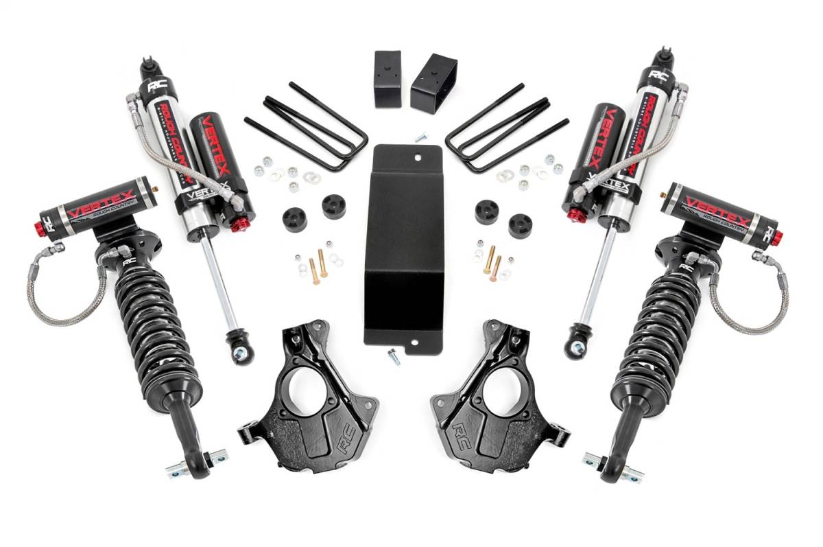 If youre looking for not-too-tall and not-too-small, Rough Countrys 3.5' Lifted Knuckle kit is the perfect option for increased ground clearance and aggressive good looks! This all-inclusive kit features everything you need for a stunning, new appearance and enhanced off-road action, with a host of features designed to promote an incredible suspension geometry and ride quality!Rough Countrys 3.5-inch kit features a set of lifted knuckles allowing you to lift your vehicle in the best possible way. Other kits only replace your upper control arms which can leave your CV boot prone to damage by making contact with the lower arms. Rough Countrys innovative, lifted knuckle design gives you plenty of clearance to keep your CV out of harms way while promoting a better upper arm ball joint angle and better ride quality to boot.This kit includes Rough Countrys premium Vertex adjustable shocks! These high-performance reservoir shocks offer an elite ride-quality in every situation you face, with an 8-stage adjustable damping system that lets you perfectly dial-in your ride for whatever lies ahead. Whether you want a smooth ride for city streets or the ultimate damping for off-road mayhem, a quick spin of the dial lets you adjust each shock to the exact performance specifications you desire.