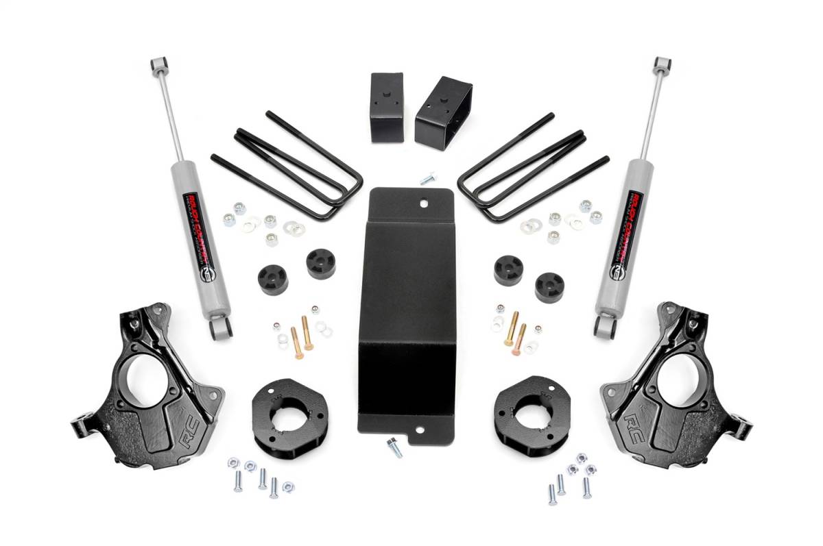 If youre looking for not-too-tall and not-too-small, Rough Countrys 3.5' Lifted Knuckle kit is the perfect option for increased ground clearance and aggressive good looks! This all-inclusive kit features everything you need for a stunning, new appearance and enhanced off-road action, with a host of features designed to promote an incredible suspension geometry and ride quality!Rough Countrys 3.5-inch kit features a set of lifted knuckles allowing you to lift your vehicle in the best possible way. Other kits only replace your upper control arms which can leave your CV boot prone to damage by making contact with the lower arms. Rough Countrys innovative, lifted knuckle design gives you plenty of clearance to keep your CV out of harms way while promoting a better upper arm ball joint angle and better ride quality to boot.This kit includes Rough Countrys premium N3 shocks! These 10-stage variable valving, high-pressure Nitrogen charged shocks offer a fantastic blend of off-road action and smooth highway ride quality. Also included in this kit are a set of fabricated rear blocks that are stronger and offer a longer lifespan than cast blocks while being less susceptible to damage and the environment.Includes a Lifetime Replacement Guarantee!