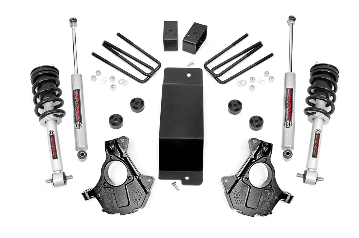 If youre looking for not-to-tall and not-too-small, Rough Countrys 3.5' Lifted Knuckle kit is the perfect option for increased ground clearance and aggressive good looks! This all-inclusive kit features everything you need for a stunning, new appearance and enhanced off-road action, with a host of features designed to promote an incredible suspension geometry and ride quality!Rough Countrys 3.5-inch kit features a set of lifted knuckles allowing you to lift your vehicle in the best possible way. Other kits only replace your upper control arms which can leave your CV boot prone to damage by making contact with the lower arms. Rough Countrys innovative, lifted knuckle design gives you plenty of clearance to keep your CV out of harms way while promoting a better upper arm ball joint angle and better ride quality to boot.This kit includes Rough Countrys premium N3 shocks! These 10-stage variable valving, high-pressure Nitrogen charged shocks offer a fantastic blend of off-road action and smooth highway ride quality. Also included in this kit are a set of fabricated rear blocks that are stronger and offer a longer lifespan than cast blocks while being less susceptible to damage and the environment. This kit also includes Rough Countrys Performance N3 Struts for improved tire contact with the road and increased stability and performance.These struts are engineered to fit perfectly on each intended application, and feature a pre-installed coil spring for easy installation without the need for strut disassembly. Simply remove your factory strut and replace with this easy, convenient system. The result is an increased ride height that mimics the factory responsiveness and handling of the OE strut. Includes a Lifetime Replacement Guarantee!