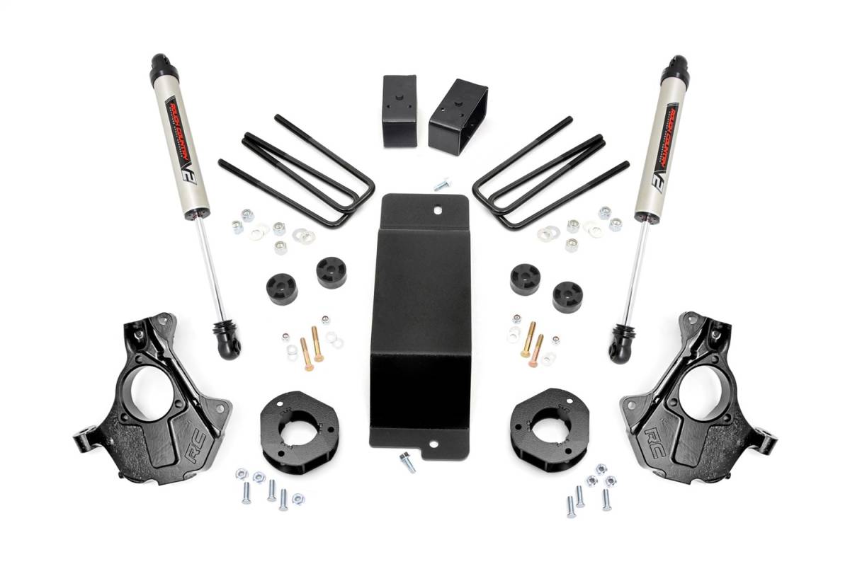 If youre looking for not-too-tall and not-too-small, Rough Countrys 3.5' Lifted Knuckle kit is the perfect option for increased ground clearance and aggressive good looks! This all-inclusive kit features everything you need for a stunning, new appearance and enhanced off-road action, with a host of features designed to promote an incredible suspension geometry and ride quality!Rough Countrys 3.5-inch kit features a set of lifted knuckles allowing you to lift your vehicle in the best possible way. Other kits only replace your upper control arms which can leave your CV boot prone to damage by making contact with the lower arms. Rough Countrys innovative, lifted knuckle design gives you plenty of clearance to keep your CV out of harms way while promoting a better upper arm ball joint angle and better ride quality to boot.This kit includes Rough Countrys premium V2 Monotube shocks! These 10-stage variable valving, high-pressure Nitrogen charged shocks offer a fantastic blend of off-road action and smooth highway ride quality. Also included in this kit are a set of fabricated rear blocks that are stronger and offer a longer lifespan than cast blocks while being less susceptible to damage and the environment.Includes a Lifetime Replacement Guarantee!