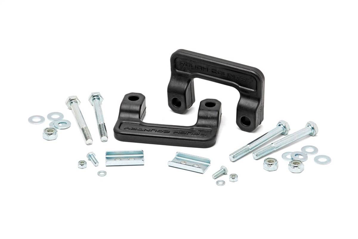Run up to a 32-inch tire while leveling the front of your vehicle with the rear, using Rough Countrys 2-inch Leveling Suspension Kit for GMC Sierra Denali 1500 Pickups equipped with Magnetic Ride Control. This set of lower front strut mount extensions immediately offers increased ground clearance without the hassle of a long and drawn out installation process. Featuring 100% bolt-on installation and a unique design that allows fitment without the need to disassemble the strut, youre ready to get that killer look in no-time flat.