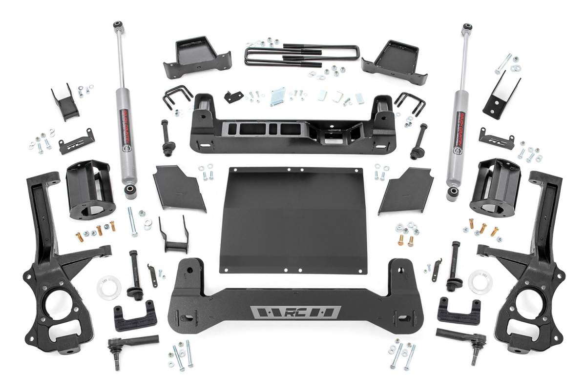 Chevys 2019 1500 features an impressive all-new design thats built from the ground up, with aggressive angles and head-turning stylings that fit in beautifully when transformed with Rough Countrys 6in Suspension Lift.This kit lifts and levels your vehicle for a commanding stance and enough clearance to run 35x12.50 tires on 10in wide wheels. Rough Country has engineered this kit to provide optimal suspension geometry while retaining the factory ride quality, giving you enhanced off-road capabilities without sacrificing the handling and smooth ride that makes this truck so impressive.Rough Countrys 6in Suspension lift retains the stock track width, allowing for up to a 10in wide wheel with 4.5in backspacing. Each kit includes front and rear crossmembers and a skid plate for enhanced chassis strength as well as cast steel knuckles for incredible durability and performance. Includes Rough Countrys Lifetime Replacement Guarantee!