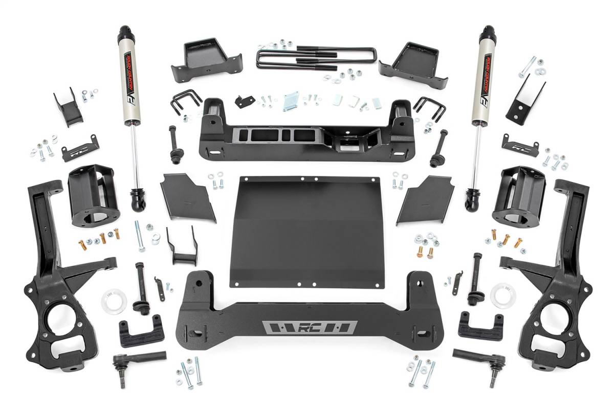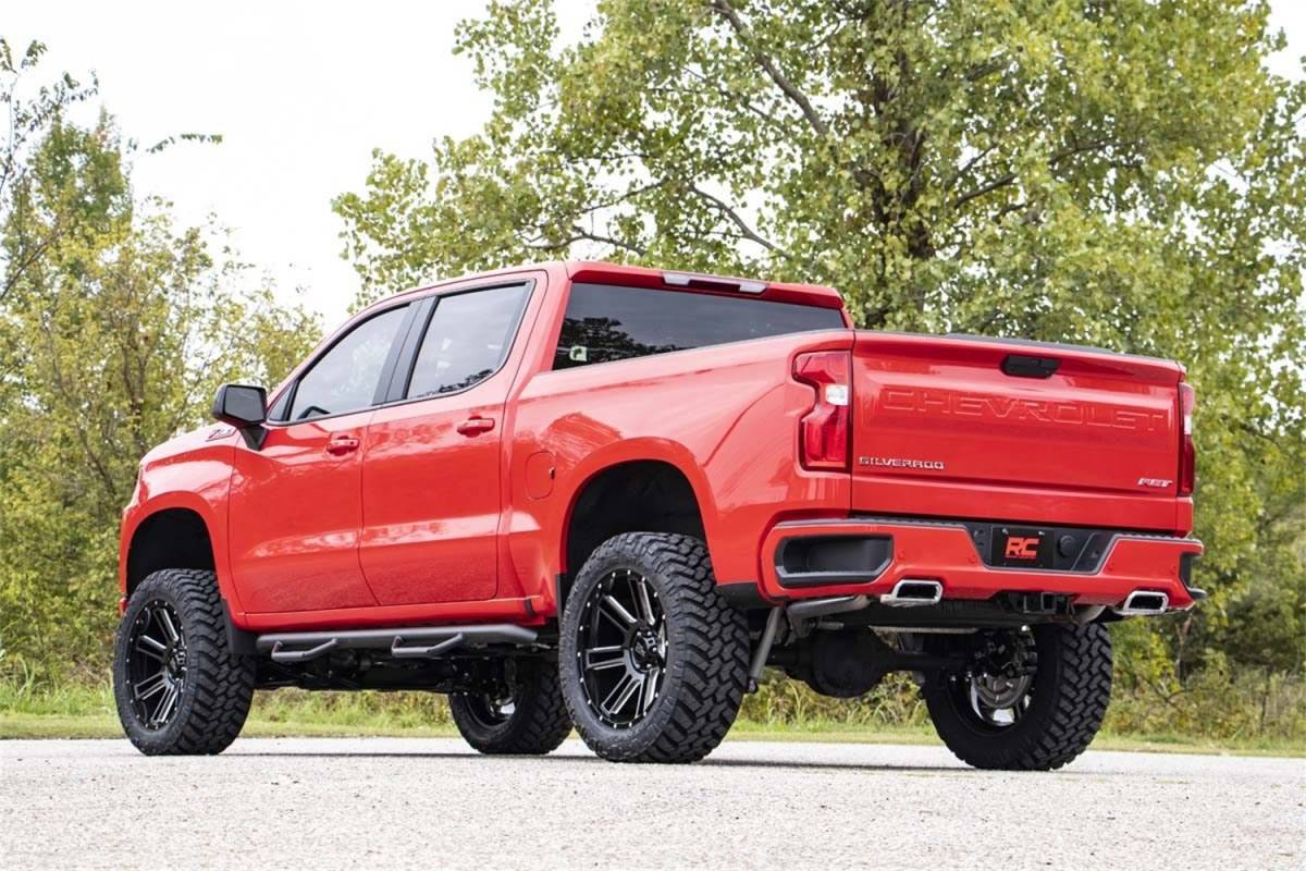 Chevys 2019 1500 features an impressive all-new design thats built from the ground up, with aggressive angles and head-turning stylings that fit in beautifully when transformed with Rough Countrys 6in Suspension Lift.This kit lifts and levels your vehicle for a commanding stance and enough clearance to run 35x12.50 tires on 10in wide wheels. Rough Country has engineered this kit to provide optimal suspension geometry while retaining the factory ride quality, giving you enhanced off-road capabilities without sacrificing the handling and smooth ride that makes this truck so impressive.Rough Countrys 6in Suspension lift retains the stock track width, allowing for up to a 10in wide wheel with 4.5in backspacing. Each kit includes front and rear crossmembers and a skid plate for enhanced chassis strength as well as cast steel knuckles for incredible durability and performance. Includes Rough Countrys Lifetime Replacement Guarantee!