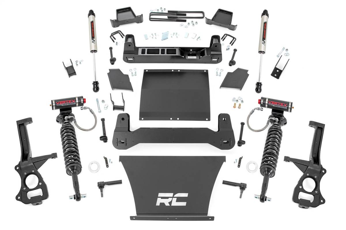 GMCs 2019 Sierra 1500 features an impressive all-new design thats built from the ground up, with aggressive angles and head-turning stylings that fit in beautifully when transformed with Rough Countrys 6in Suspension Lift.This kit lifts and levels your vehicle for a commanding stance and enough clearance to run 35x12.50 tires on 10in wide wheels. Rough Country has engineered this kit to provide optimal suspension geometry while retaining the factory ride quality, giving you enhanced off-road capabilities without sacrificing the handling and smooth ride that makes this truck so impressive.Rough Countrys 6in Suspension lift retains the stock track width, allowing for up to a 10in wide wheel with 4.5in backspacing. Each kit includes front and rear crossmembers and a skid plate for enhanced chassis strength as well as cast steel knuckles for incredible durability and performance. Includes Rough Countrys Lifetime Replacement Guarantee!