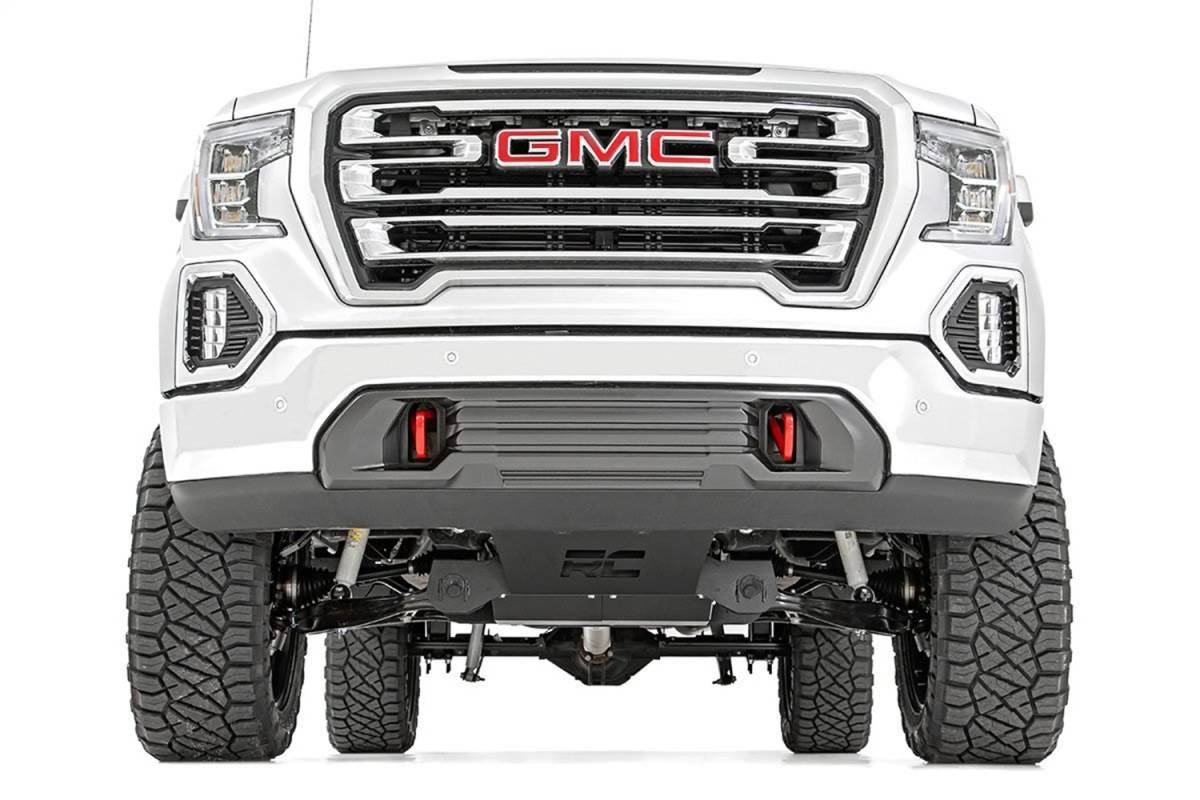 GMCs 2019 Sierra 1500 features an impressive all-new design thats built from the ground up, with aggressive angles and head-turning stylings that fit in beautifully when transformed with Rough Countrys 6in Suspension Lift.This kit lifts and levels your vehicle for a commanding stance and enough clearance to run 35x12.50 tires on 10in wide wheels. Rough Country has engineered this kit to provide optimal suspension geometry while retaining the factory ride quality, giving you enhanced off-road capabilities without sacrificing the handling and smooth ride that makes this truck so impressive.Rough Countrys 6in Suspension lift retains the stock track width, allowing for up to a 10in wide wheel with 4.5in backspacing. Each kit includes front and rear crossmembers and a skid plate for enhanced chassis strength as well as cast steel knuckles for incredible durability and performance. Includes Rough Countrys Lifetime Replacement Guarantee!