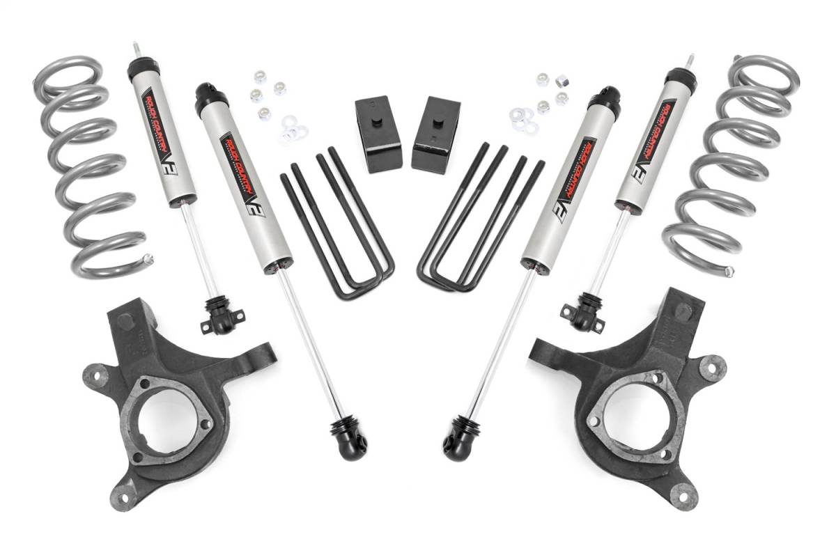 Take your truck on the road less traveled with Rough Countrys new 4.5 in. N2 Suspension Lift for 99-06 2wd GM 1500 models. With an all-inclusive kit at our industry leading low price, off-road action has never been more affordable! This kit includes two beefy front lift knuckles which maintain factory driveline angles for improved performance. Also included are a set of front lifted coil springs and rear lift blocks which help achieve an additional 4.5 in. of lift - enough to clear up to 33 in. tires! Most notably, this kit includes front and rear N3 Shock Absorbers. Utilizing 10-stage velocity sensitive valving, Rough Countrys N3 Shocks are application tuned; designed specifically for use with the GM 1500 setup to ride in.more like stock in. on the highway while offering superb off-road performance. Featuring a 100% bolt-on installation procedure, this kit is a cinch to install, requiring only minor trimming of the fender shroud for fitment with some larger tires. Taking your truck off the beaten path has never been easier or more affordable!