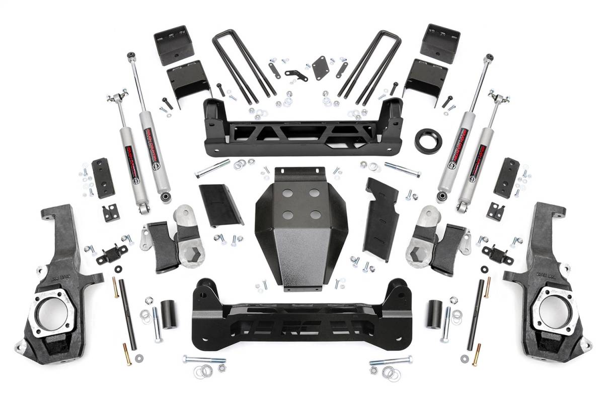 Right off the lot The GM 2500 HD has an impressive stance and a killer look, inspiring Rough Country to build a kit that would add crucial enhancements while taking nothing away from this sharp looking, new model truck. The 7.5 in. N3 Suspension Lift for GM 2500 HD features a Non-Torsion Drop Design for better clearance and handling while maintaining proper angles in a in.clean and tucked away in. fashion. This kit also features Heavy Duty components worthy of the HD badge; With 1/4 in. thick steel crossmembers, 1/2 in. thick NTD Brackets, and a durable, thick Skid Plate - all laser-cut and powder coated in our in.Hammer Black in. color to match the factory components. Installation requires no drilling or modifying the differential, meaning no in.invasive in. mods to your new toy. A set of braided Stainless Steel Brake Lines hones the whole package in.Our innovative HD lift doesnt just look like it came from the showroom floor, it drives like it did too. This kit doesnt widen the stock track width, and the Non Torsion Drop design keeps everything at optimum angles, leaving that factory feel to handling corners and turns. A full set of Nitrogen charged N2.0 Shock Absorbers offer 10-Stage velocity sensitive valving, and are custom valved for each model kit we offer - meaning you get a set of shocks designed to preserve your factory ride quality.