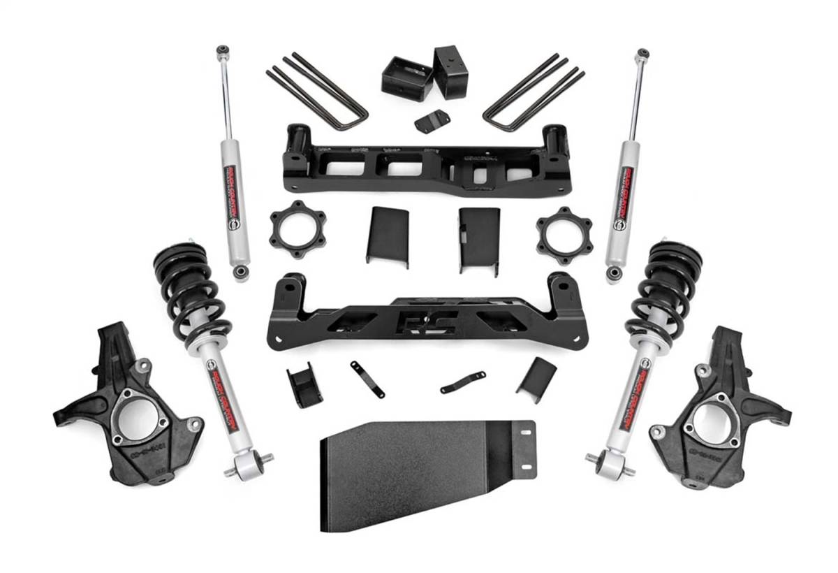 Overhaul your 07 - 13 Chevy / GMC 1500 Pickup with Rough Countrys jaw-dropping 5-inch Suspension Lift. Gain enough clearance to run up to 33-inch tires on factory 20-inch wheels with this all-inclusive kit. A set of lifted knuckles, front and rear crossmembers, 4.5-inch fabricated rear blocks, and upper strut spacers help your truck achieve a monster stance. This 1500 lif kit also ships with differential drop brackets, cv spacers, sway-bar drop brackets, and rear brake line brackets to maintain optimum angles after lifting. A durable lower skid plate keeps crucial components protected, and our Premium N3 shocks allow for uncompromised off-road performance. Featuring 100% precision laser cut materials designed by Rough Country engineers, this 1500 lift kit installs easy and fits like a glove.
