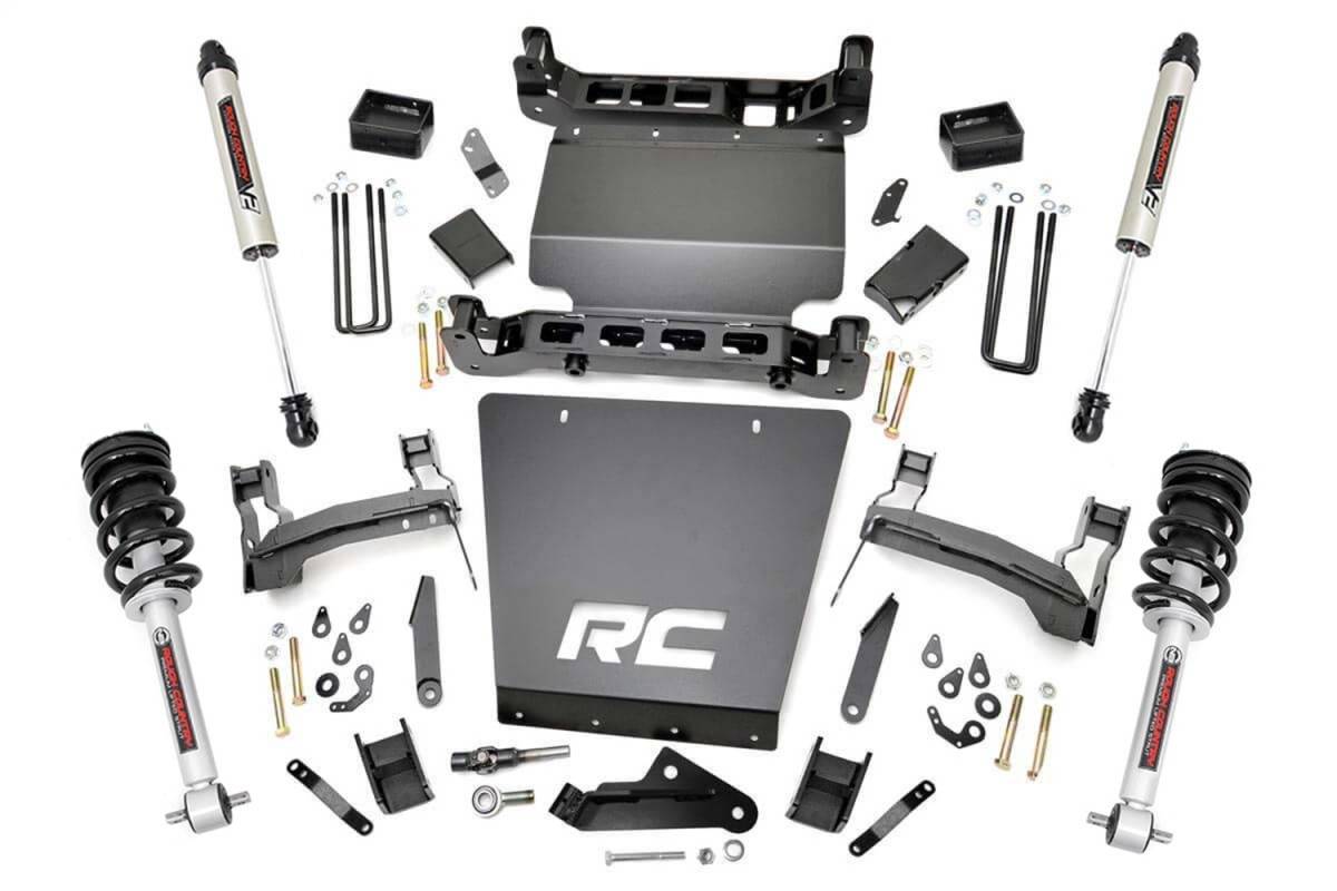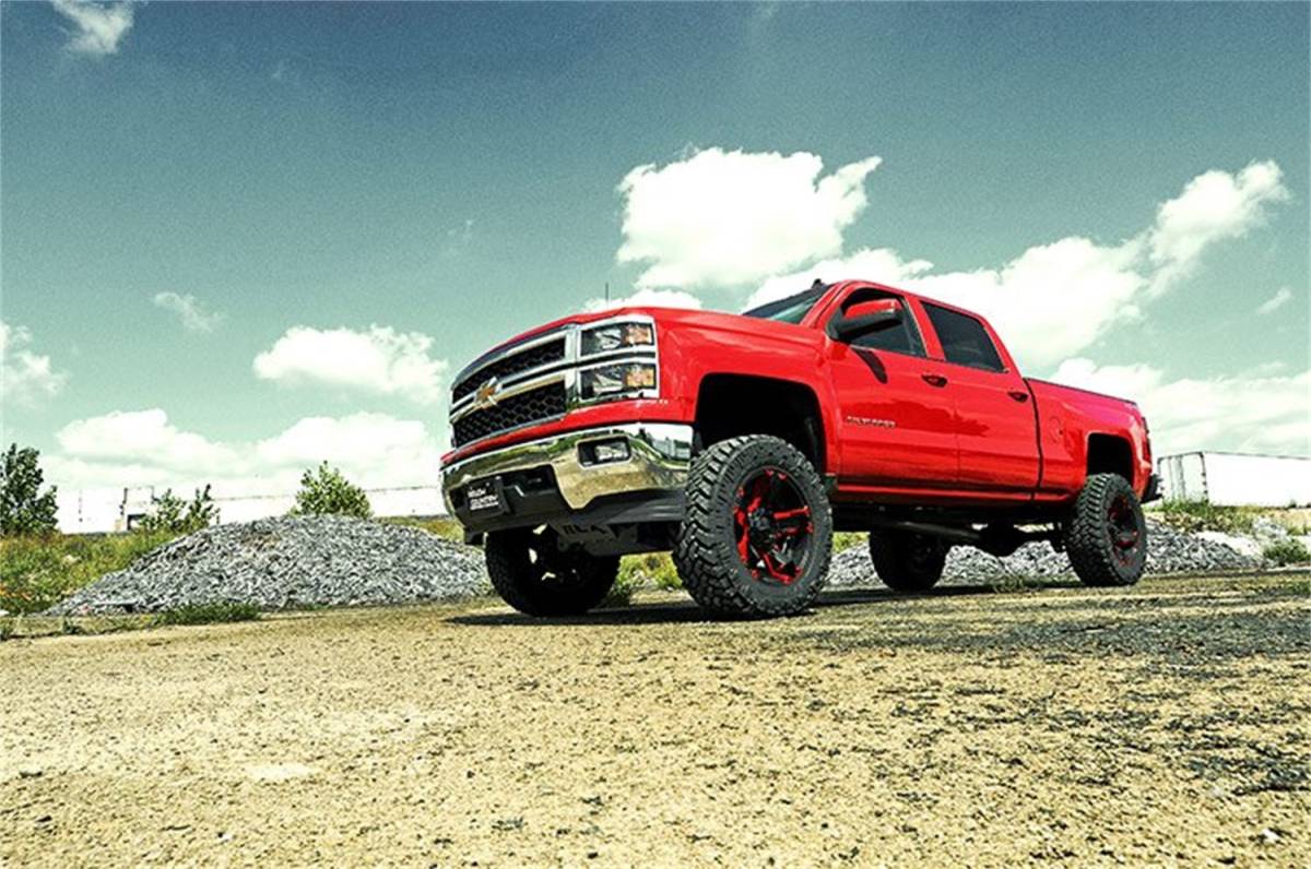 What better way to deck out that brand new 2014-up GM 1500 you worked so hard for than with the aggressive stance and jaw-dropping ride height of Rough Countrys brand-new 7-inch Suspension Lift for 2014-up Chevy / GMC 1500 Pickups? This massive lift is designed to retain your stock track width! This affords your truck the ability to run up to an impressive 35-inch tire on factory 20-inch wheels, and gives you a nearly limitless choice in aftermarket wheels and tires that other kits just cant fit. This kit ships with EVERYTHING you need to give your new truck the aggressive stance and capabilities it deserves; Stout upper strut spacers, a beefy front and rear skid plate, our Heavy Duty Front and Rear Crossmembers, and a set of differential and sway-bar drop brackets - all designed by our in-house Research and Development team with 100% laser-cut materials for the best possible fit on your vehicle. This whopping 7-inch Lift also comes with a set of rear 6-inch fabricated anti-wrap lift blocks that offer a huge boost while helping combat dreaded axle wrap issues on inferior big lifts. Also included are a set of our Nitrogen charged N3 Shocks! Offering the best in balanced performance for on and off-road use, these shocks feature a 10-stage velocity sensitive valving custom tuned for this specific application. That means these shocks are specifically valved for use with this vehicle and lift combo, giving you unparalleled performance for any driving situation.