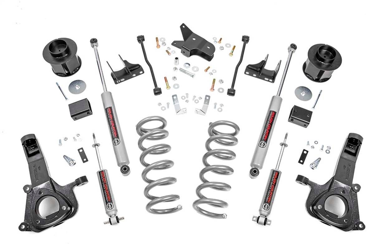 Gain increased ground clearance and incredible good looks for your V8 2wd RAM 1500 with Rough Countrys 6in Suspension Lift. This all-inclusive lift comes with everything you need to overhaul your 2wd Dodge RAMs appearance while maintaining a factory-like ride quality.Each kit features a set of lifted knuckles and coil spring spacers and lifted coil springs offering enough ground clearance to run up to a 37x12.50 tire on a 20in wheel while giving your truck a better stance and more aggressive appearance. This kit also features Rough Countrys Premium N3 Shocks! These 10-stage variable valving, high-pressure Nitrogen charged shocks offer a fantastic blend of off-road action and smooth highway ride quality. With a durable 18mm spring-loaded piston rod and faster-cooling 54mm shock body, this shock offers up to 36kN Tensile Strength for a long lifespan of impressive vibration dampening.Includes Rough Countrys Lifetime Replacement Guarantee!
