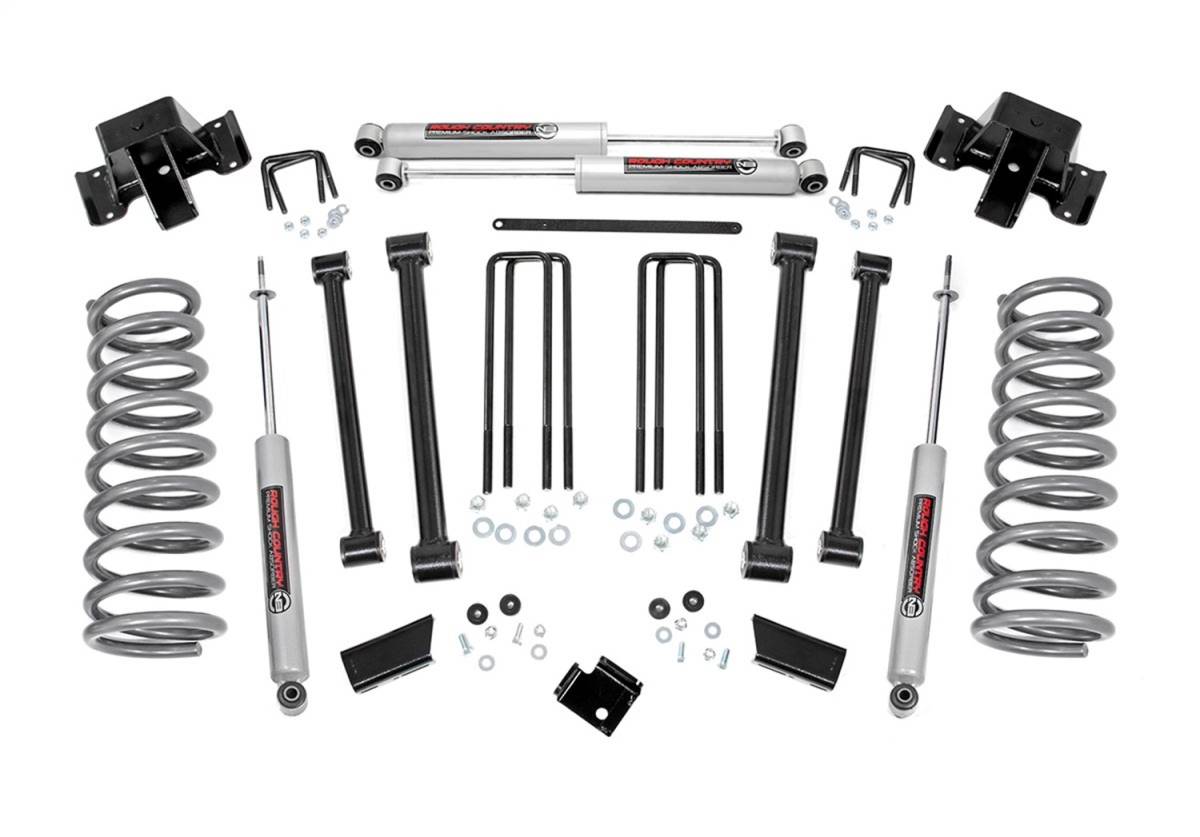 Gain additional ride height and aggressive good looks with Rough Countrys 94-02 Dodge 2500 3-inch Lift Kit. This all-inclusive kit features everything you need to transform your truck into a capable off-road machine with head-turning appeal.Featuring a set of durable control arms, HD lifted coil springs, and rear fabricated anti-wrap blocks, this 3-inch kit is loaded with great upgrades to get the most out of your Dodge. This kit features a set of Nitrogen-charged N3 Shock Absorbers provides a balanced ride for both on and off-road use. In terms of ride quality this means the best of both worlds for a daily driver thats not afraid to get down and dirty.Best of all, this kit is incredibly easy to install. With a 100% bolt-on design, this kit can be installed in any home garage with common tools in a fraction of the time of more complicated kits. Includes Rough Countrys Lifetime Replacement Guarantee.